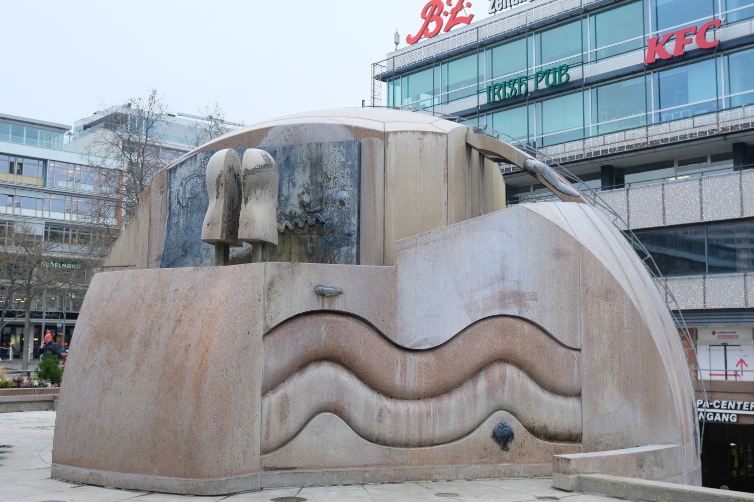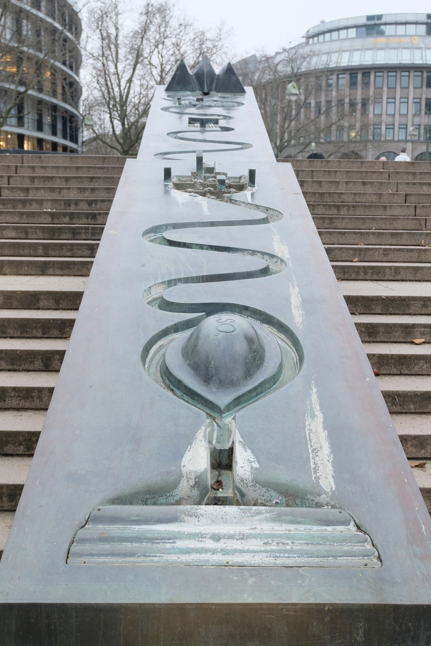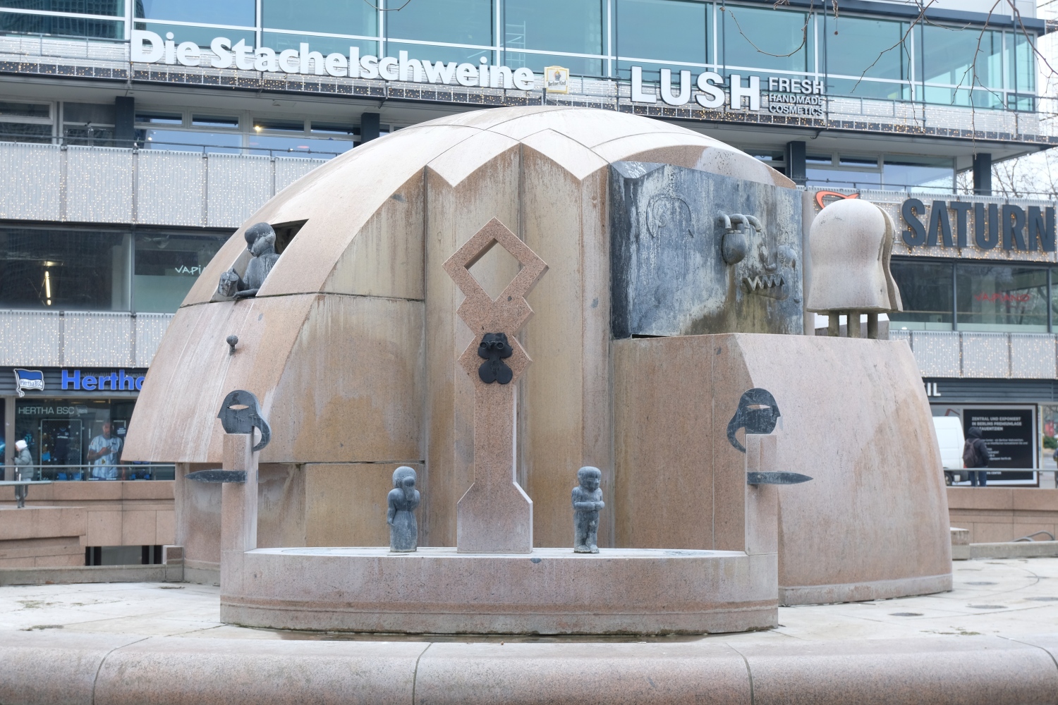 „Architektonisch entwickelt Schmettau die Anlage mit der monumentalen Kugelform und dem über Treppen abwärts geleiteten Wasserlauf sowohl überirdisch als auch – mit einzelnen Figuren – über die gesamte Platzfläche bis zur Budapester straße und schließlich in die ‚Unterwelt‘ des Breitscheidplatzes, von wo aus das Tiefgeschoss des Europa-Centers erreichbar ist. Schmettaus rätselhafte Figurenensembles (…) tragen teils allegorische, karikaturistisch-alltägliche, bisweilen antikisierende und mythologische Züge. Im Verlauf des Gitters zum unteren bereich und an der einfassung des Brunnens verwendet schmettau ornamentale Vereinfachungen und dekorative Details, ohne einen bestimmten Bedeutungskontext nahezulegen“ (zitiert nach: Horst Ehmann, Barbara Straka (Bearbeitung): Kunst im Stadtraum, Berlin 1988, S. 148).