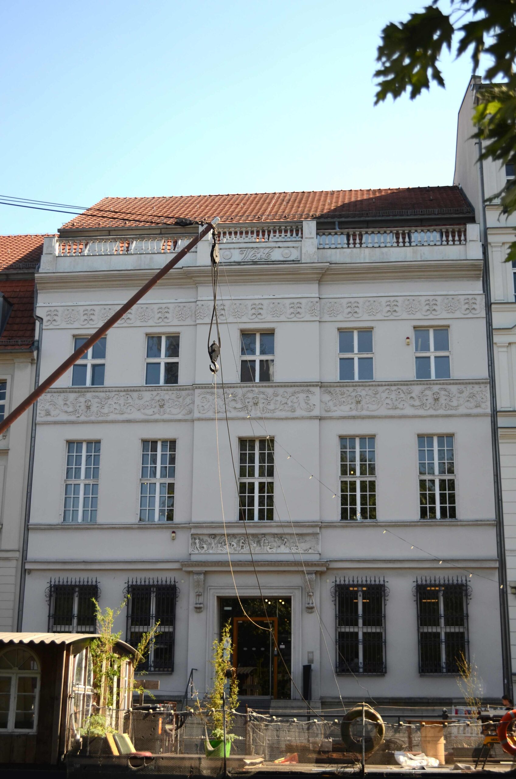 Dreigeschossiges Wohnhaus über fünf Achsen mit einachsigem Mittelrisalit. Die Fassade ist zwischen dem ersten und zweiten Obergeschoss durch einen Masken-Fries, der von Akanthusranken und floralen Motiven umgeben ist, gegliedert. Oberhalb des zweiten Geschosses folgt ein weiterer Fries mit Akanthusblattmotiven. am Mittelrisalit befindet sich unterhalb der Attikabalustrade ein Geschäftsmonogramm „W.E & C“ zwischen zwei Rosetten (Nicola Vösgen).