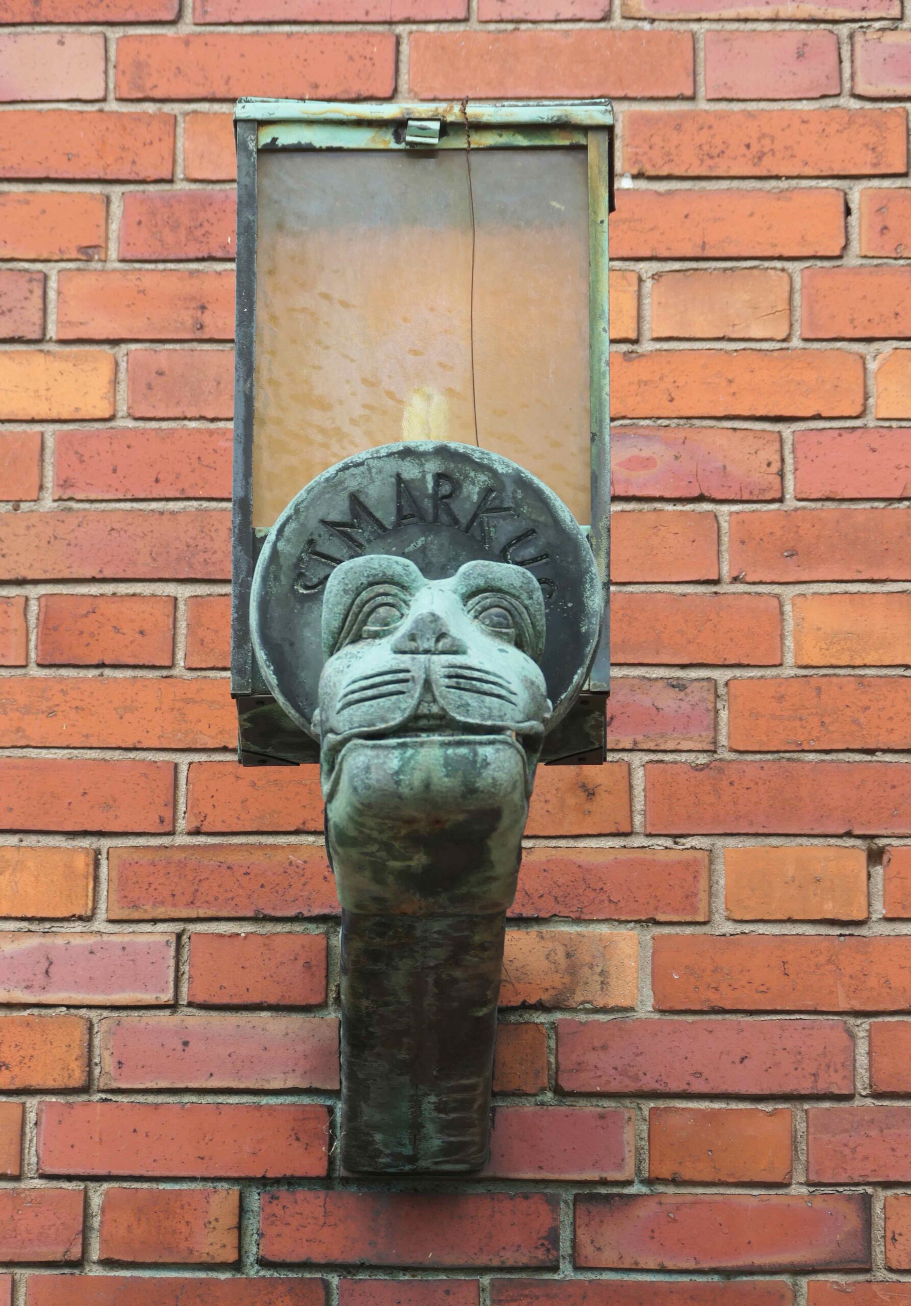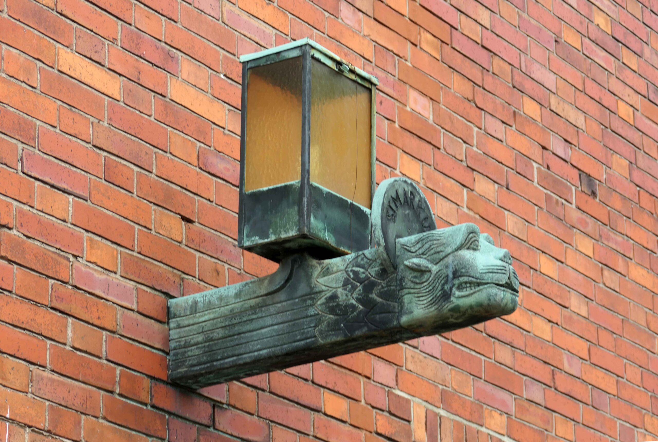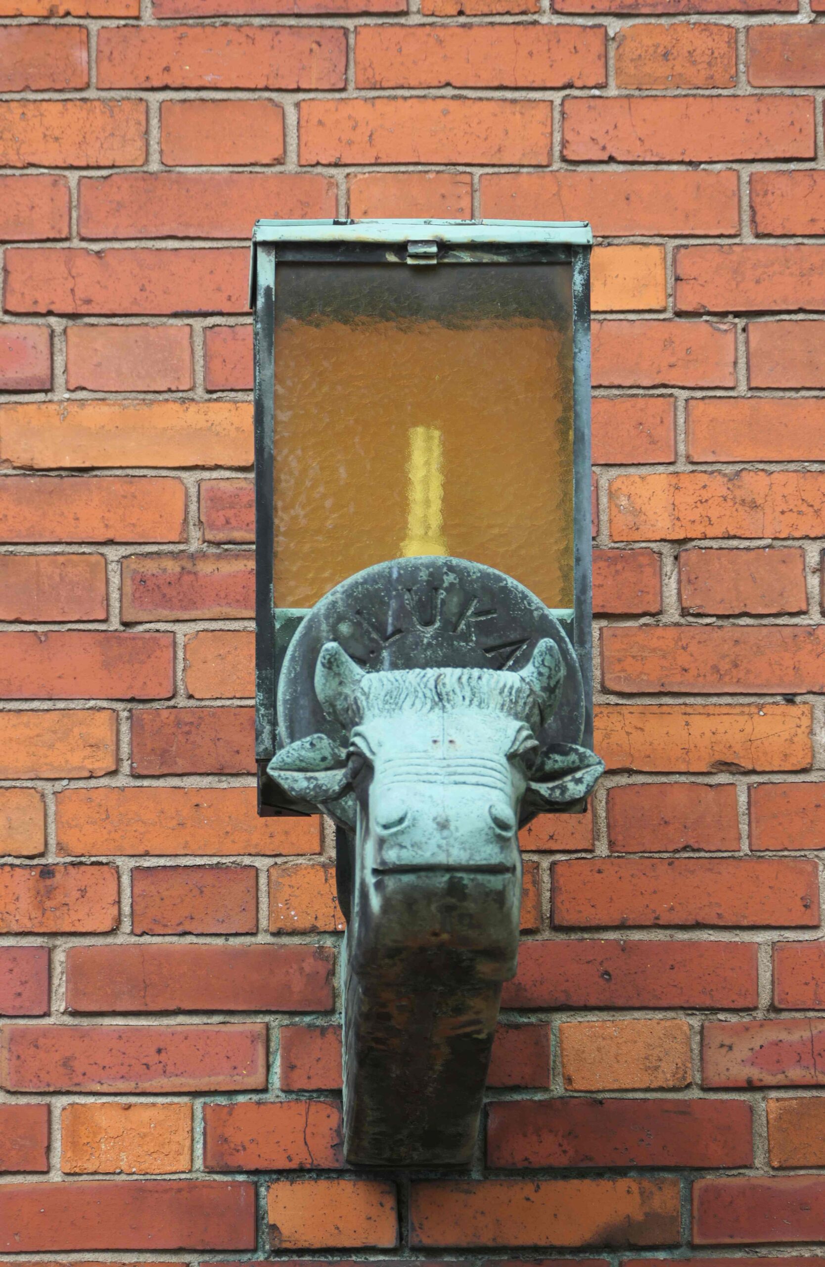 Seitlich der Eingänge am Portalturm der St.-Bernhard-Kirche befinden sich vier vorspringende Leuchter, die mit den Symbolen der Evangelisten gestaltet sind. Zwischen Hinterkopf und Lampenkörper befindet sich jeweils ein Nimbus, der den Namen des Evangelisten benennt (Nicola Vösgen).