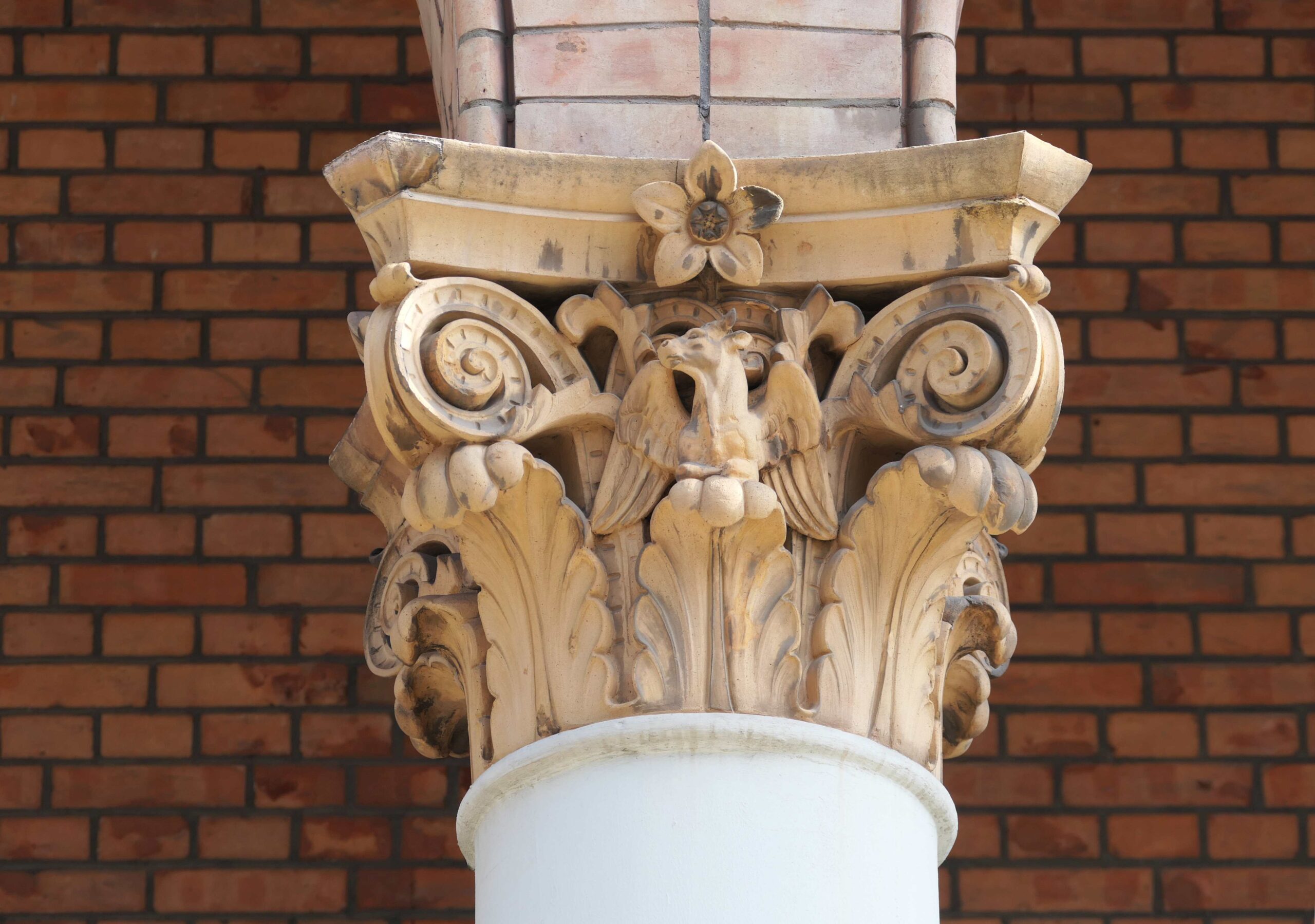 Auch die Terrakotta-Kapitelle der vier Säulen sind in der Tonwarenfabrik Ernst March Söhne gefertigt worden. In einem Bericht von 1860 werden sie bereits als am Bau vorhanden erwähnt: „Der Zugang von der Bernburgerstraße wird durch eine fünfbogige Halle vermittelt, deren vier Säulen an den reich verzierten Capitälen die vier Evangelisten tragen. Diese Capitäle wie überhaupt alle Ornamente und reicheren Gliederungen im Äußeren sind in der Thonwaaren-Fabrik von March in Charlottenburg gefertigt." (Nicola Vösgen).