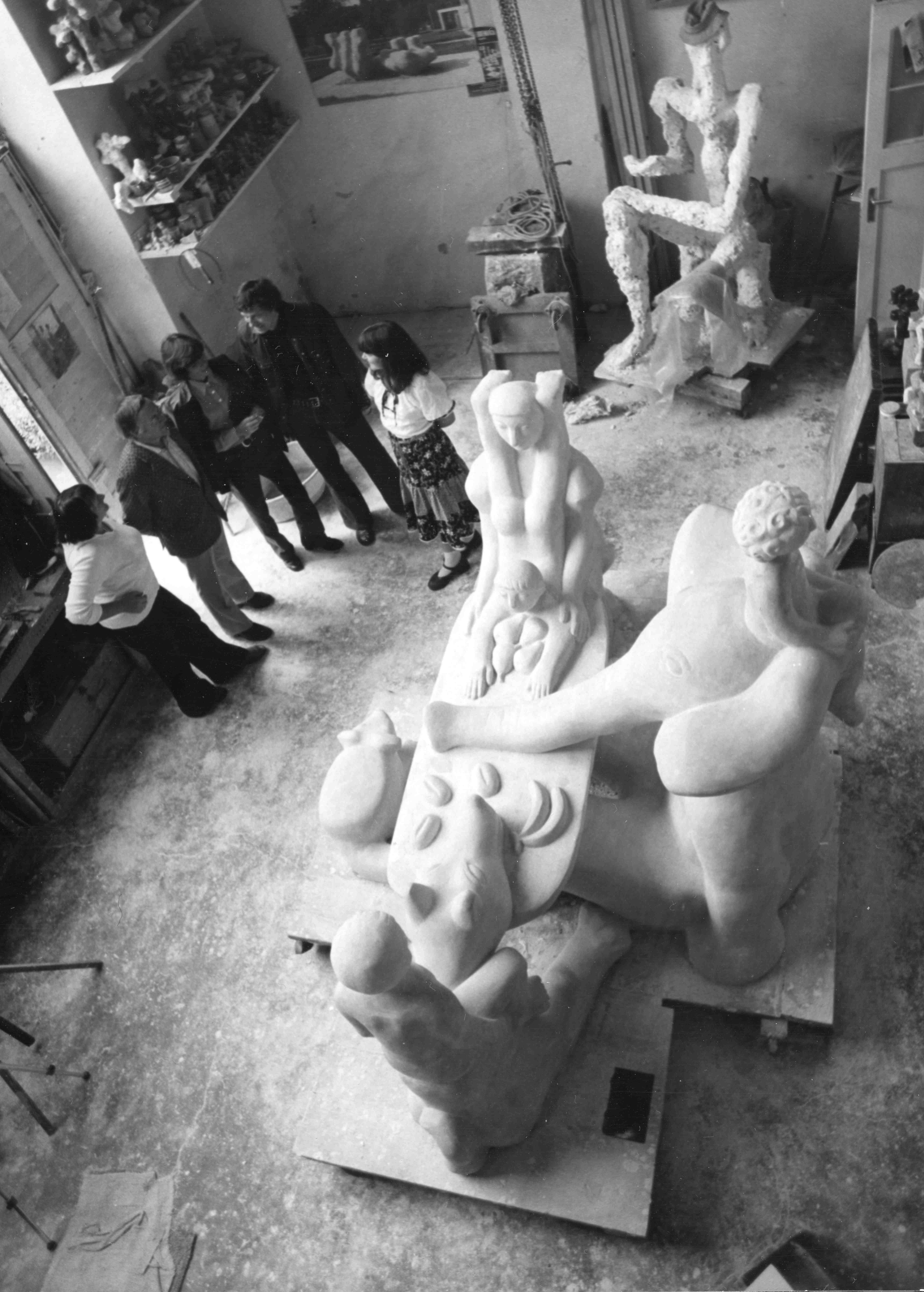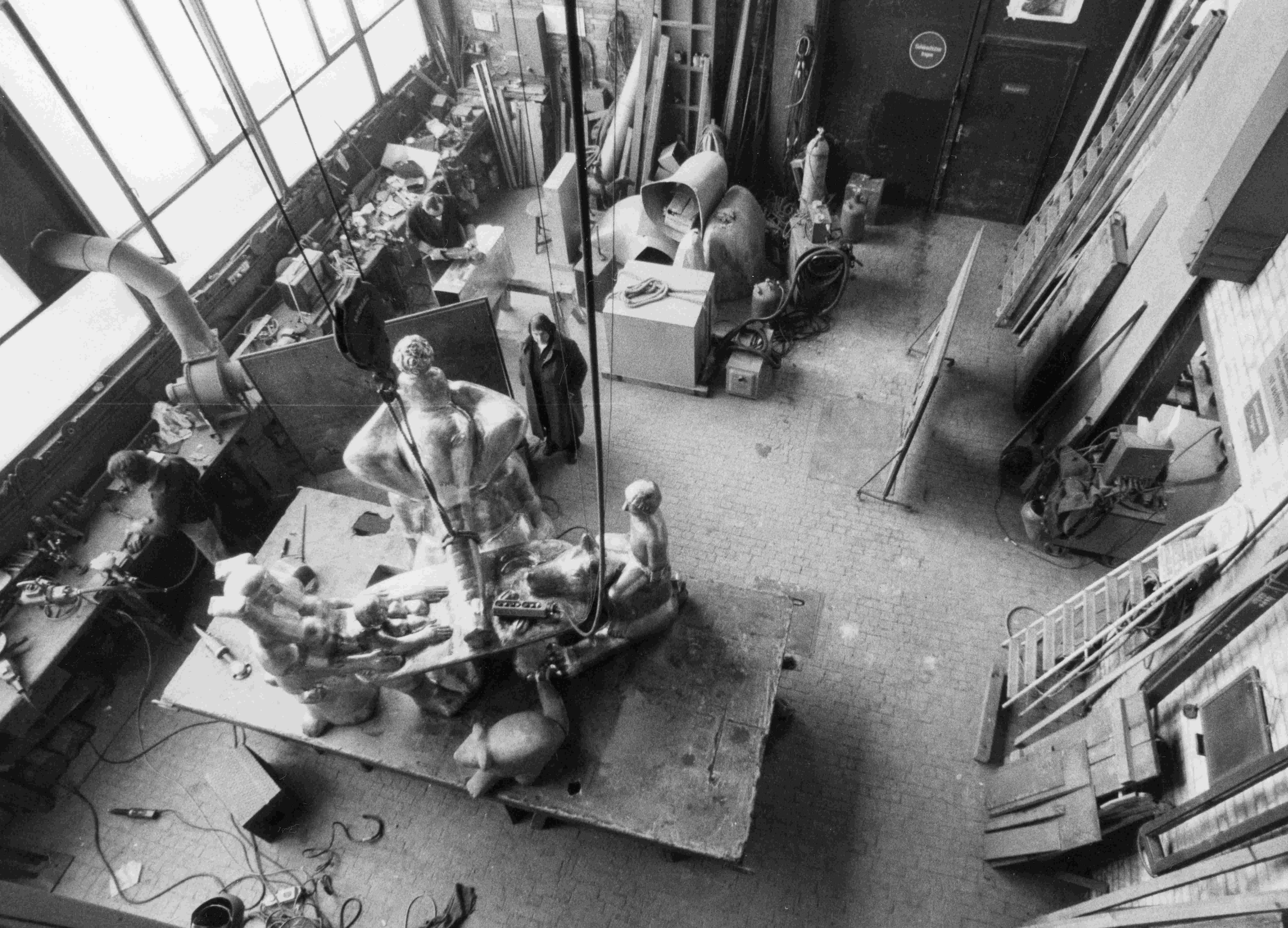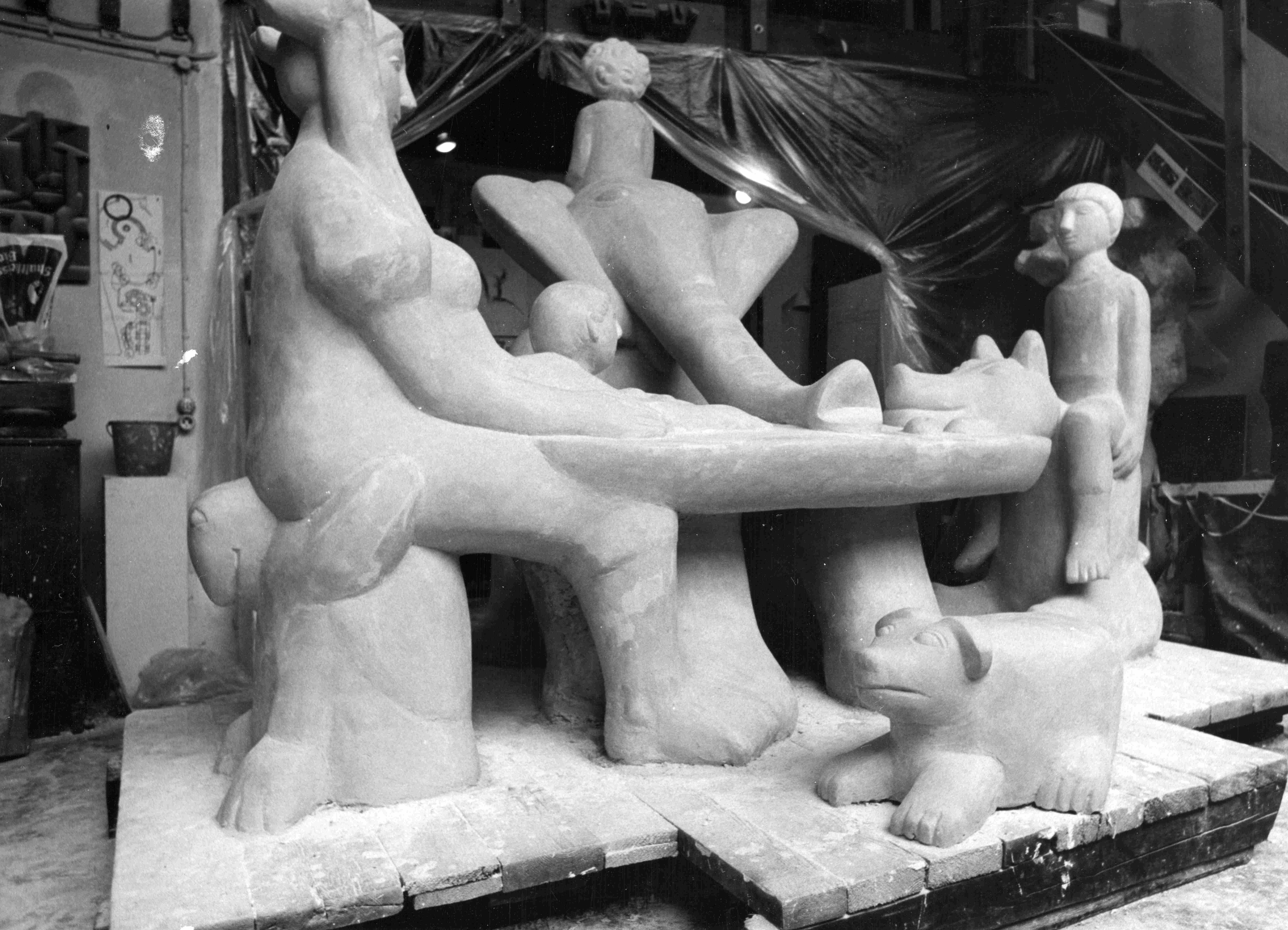 Die Figurengruppe der Künstlerin Brigitte Stamm-Haacke entstand im Rahmen eines Wettbewerbs zu "Kunst am Bau" des Weddinger Kinderkrankenhauses 1978. Die Plastik wurde unter Platanen auf dem Klinikgelände aufgestellt.