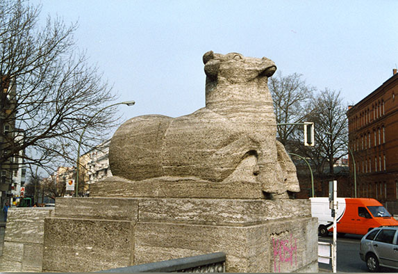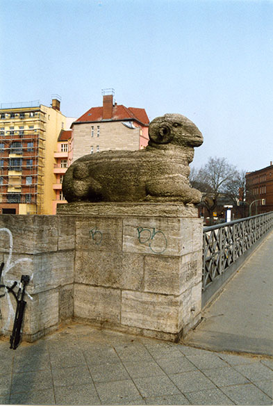 1910-1911 entstand die nach dem Kaufmann Johann Ernst Gotzkowsky (1710-1775) benannte Brücke nach Plänen Grenanders. In den Kriegsjahren 1944 und 1945 wurde die Brücke teilweise zerstört, eine der drei Tierplastiken (das „Rind“) wurde vollständig zerstört. Bei der Instandsetzung 1950 musste zumindest die Figur des Rinds neugeschaffen werden. Heute ist es durch die Überarbeitung, der auch eine begleitende Puttenfigur zum Opfer viel, kaum noch erkennbar, dass es sich bei den Pfeilerfiguren ursprünglich um Fabelwesen handelte, um fischschwänzige Widder und einen fischschwänziges Rind gehandelt hat (Jörg Kuhn).