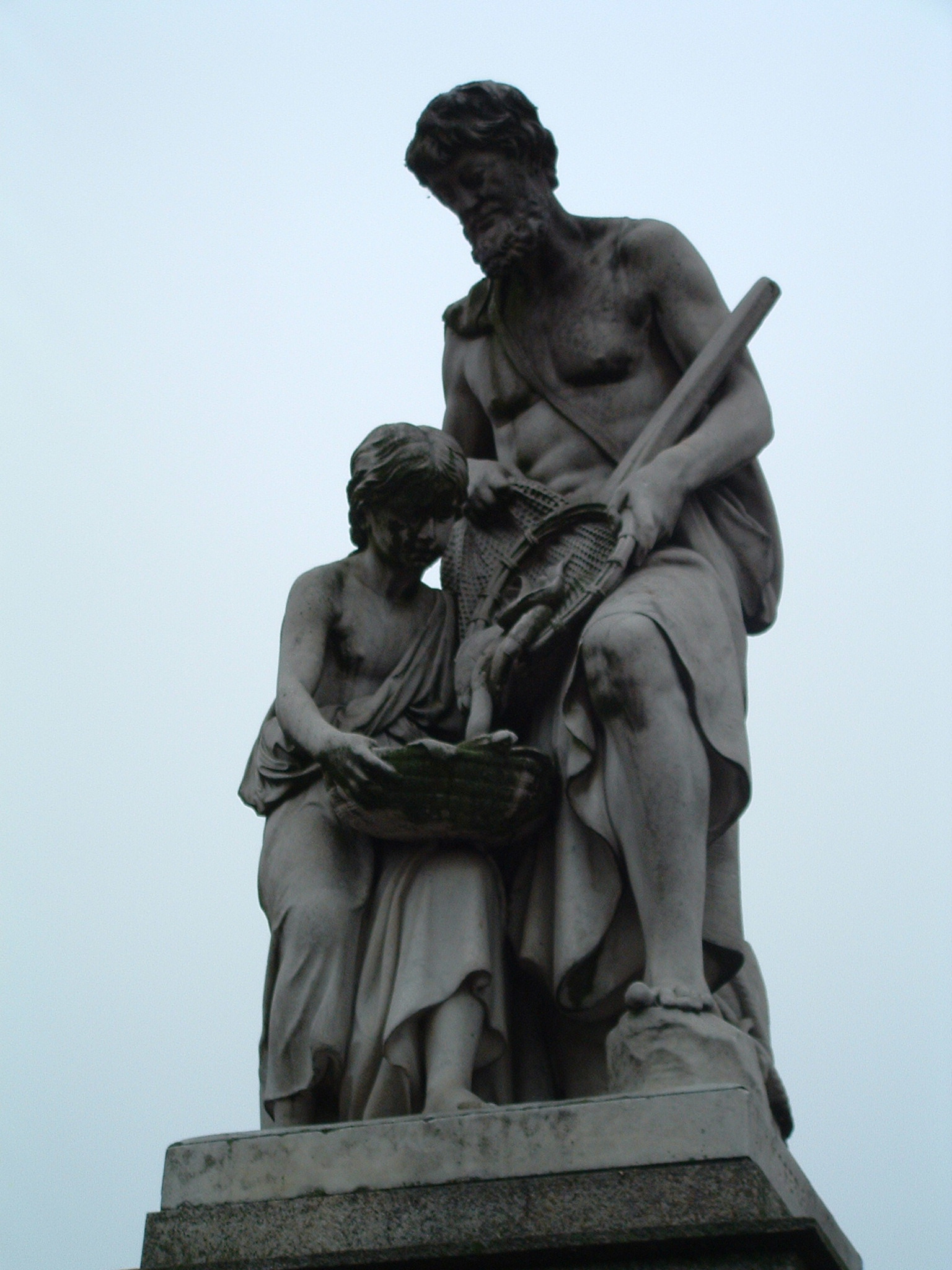 Zur Erinnerung an das Schifferei-Gewerbe von Landwehrkanal und Spree. Ursprünglich auf der Belle-Alliance-Brücke (heutige Hallesches-Tor-Brücke), seit 1904 vor der Melanchton-Brücke. Nach deren Sprengung wegen des Neubaus des Urban-Krankenhauses 1957/58 an das Sedanufer nahe der Waterloobrücke versetzt. 1989 restauriert und an die alte Stelle zurückversetzt. Figurengruppe mit Bezug zur Gruppe Flußschiffahrt von Otto Geyer sowie eines verschollenen Werks mit dem Titel "Fruchthandel" am selben Ort. (Marc Wellmann)