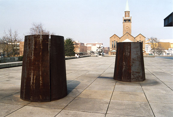 Das zweiteilige Objekt an der Rückseite der Neuen Nationalgalerie besteht aus sich nach oben hin verjüngenden polygonalen Formen. Beide Objekte bestehen aus zu einem Ring zusammengefügten künstlich korrodierten Stahlplatten, die Stahlobjekte sind hohl und nach oben hin geöffnet. Sie neigen sich in entgegengesetzte Richtungen. Dadurch, dass die ohne Plinthe oder Sockel platzierten Teile aus dem Boden zu „wachsen“ scheinen, assoziiert der Betrachter Baumstümpfe, ein Eindruck, der durch die Verjüngung der Stahlteile und die dünne, wie „Rinde“ wirkende Oberfläche verstärkt wird (Susanne Kähler).