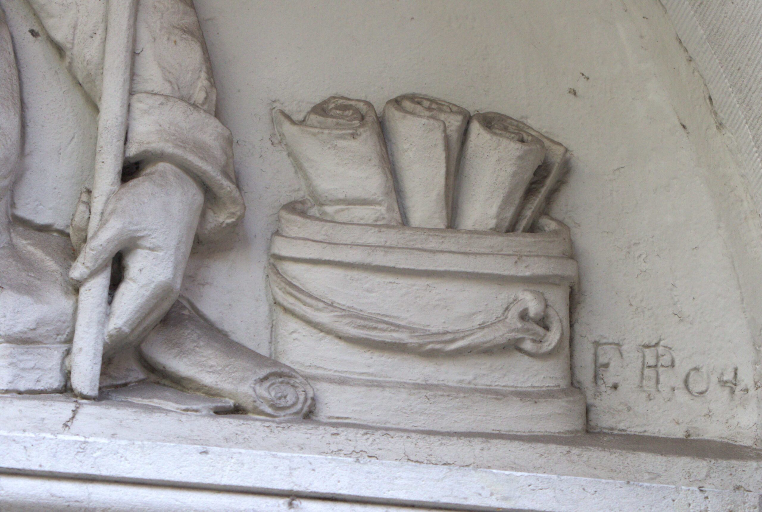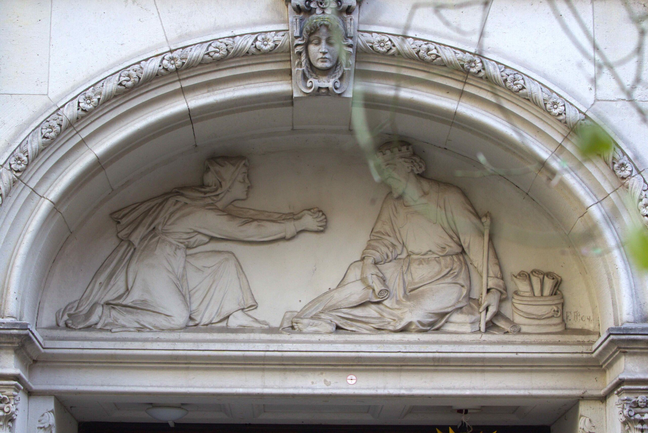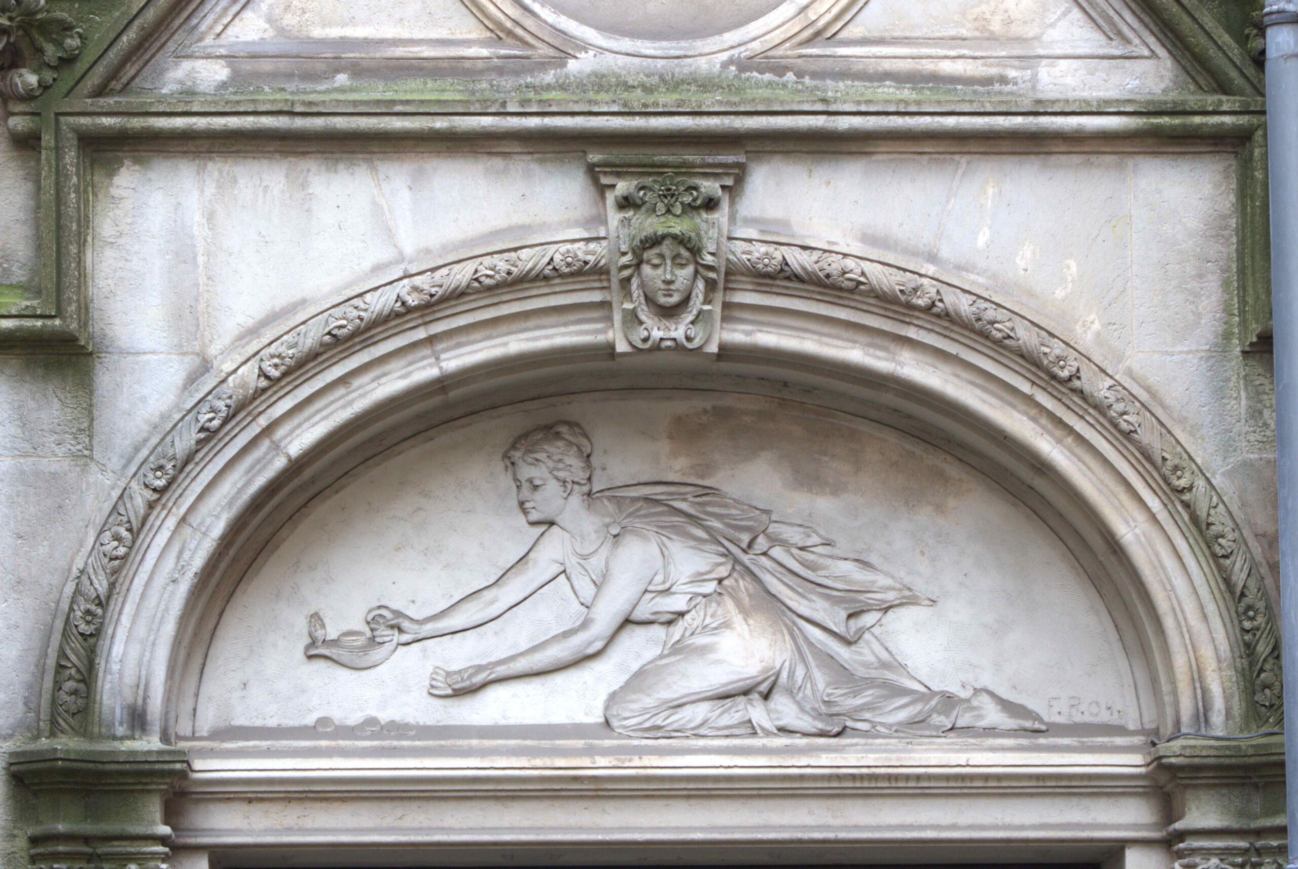 Die Reliefs aus Kalkstuck schuf Friedrich Pfannschmidt um 1903/04.