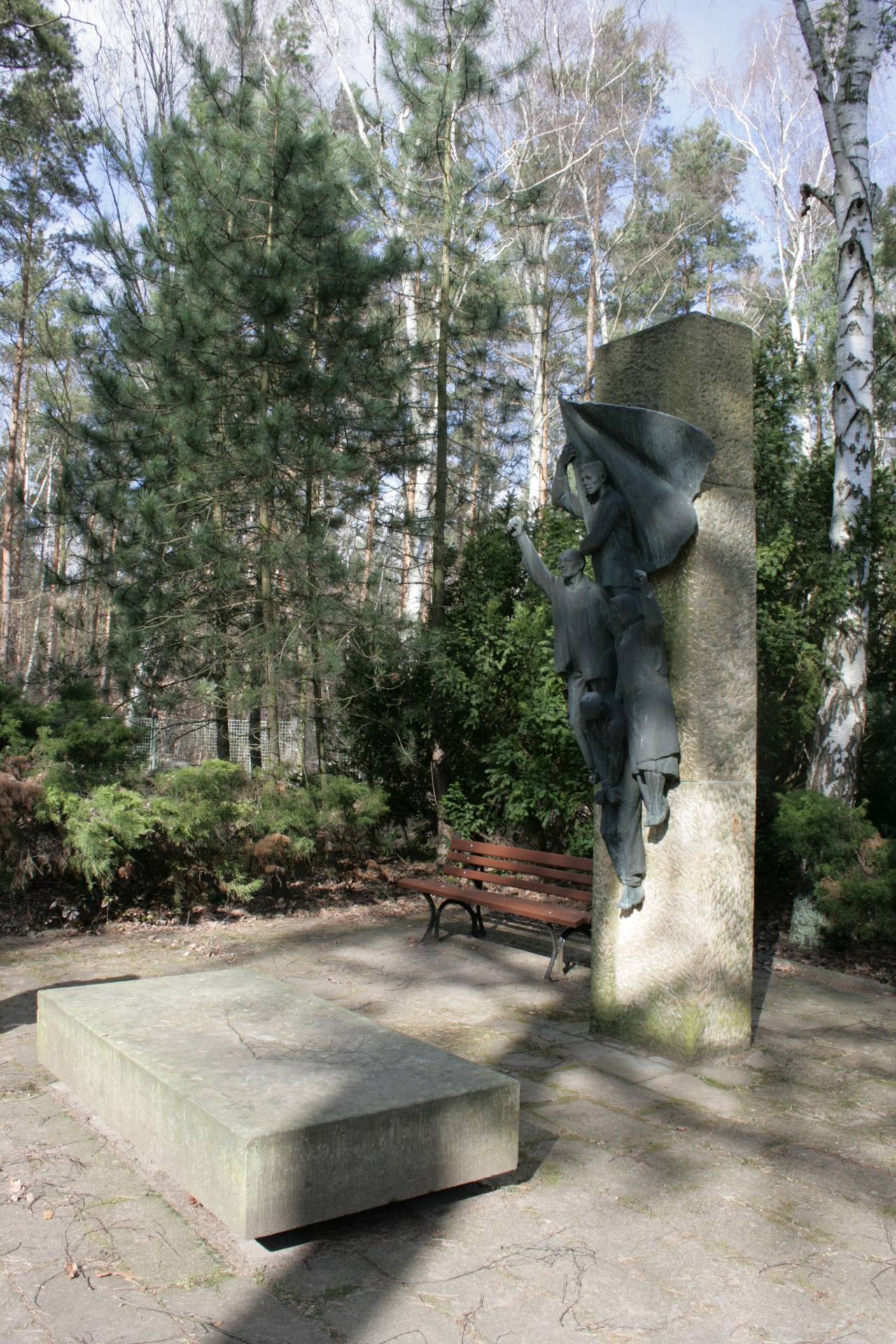 1936 bis 1939 wurde der neue Teil des Friedhofes Baumschulenweg an der Kiefholzstraße gegenüber dem alten Städtischen Friedhof angelegt. Nach dem Kriegsende 1945 wurden mehr als 50 in Berlin und Umgebung gestorbene Kriegsgefangene und aus unterschiedlichen Ländern nach Berlin verschleppte Zwangsarbeiter von anderen Begräbnisorten und aus Notgräbern hierher umgebettet. Das Sonderfeld der „Opfer des Faschismus“ wurde mit einer Bestattungsfläche für „verdiente Antifaschisten“ (zitiert nach: Endlich, 2007, S. 493) bzw. einem „Ehrenhain für Antifaschisten und Kämpfer für den Aufbau des Sozialismus“ (zitiert nach: Die Bau- und Kunstdenkmale in der DDR, Hauptstadt Berlin, Bd. II, S. 391) ergänzt. Nördlich davon, unweit des Haupteingangsgebäudes, wurde 1981 das Gedenk- und Mahnmal „Revolutionäre Kämpfer“ des Bildhauers Gerhard Thieme errichtet. 1982 wurde eine formal verwandte Zweitausführung des Denkmals auf dem Friedhof an der Friedlander Straße 156 in Berlin-Adlershof aufgestellt (Jörg Kuhn).