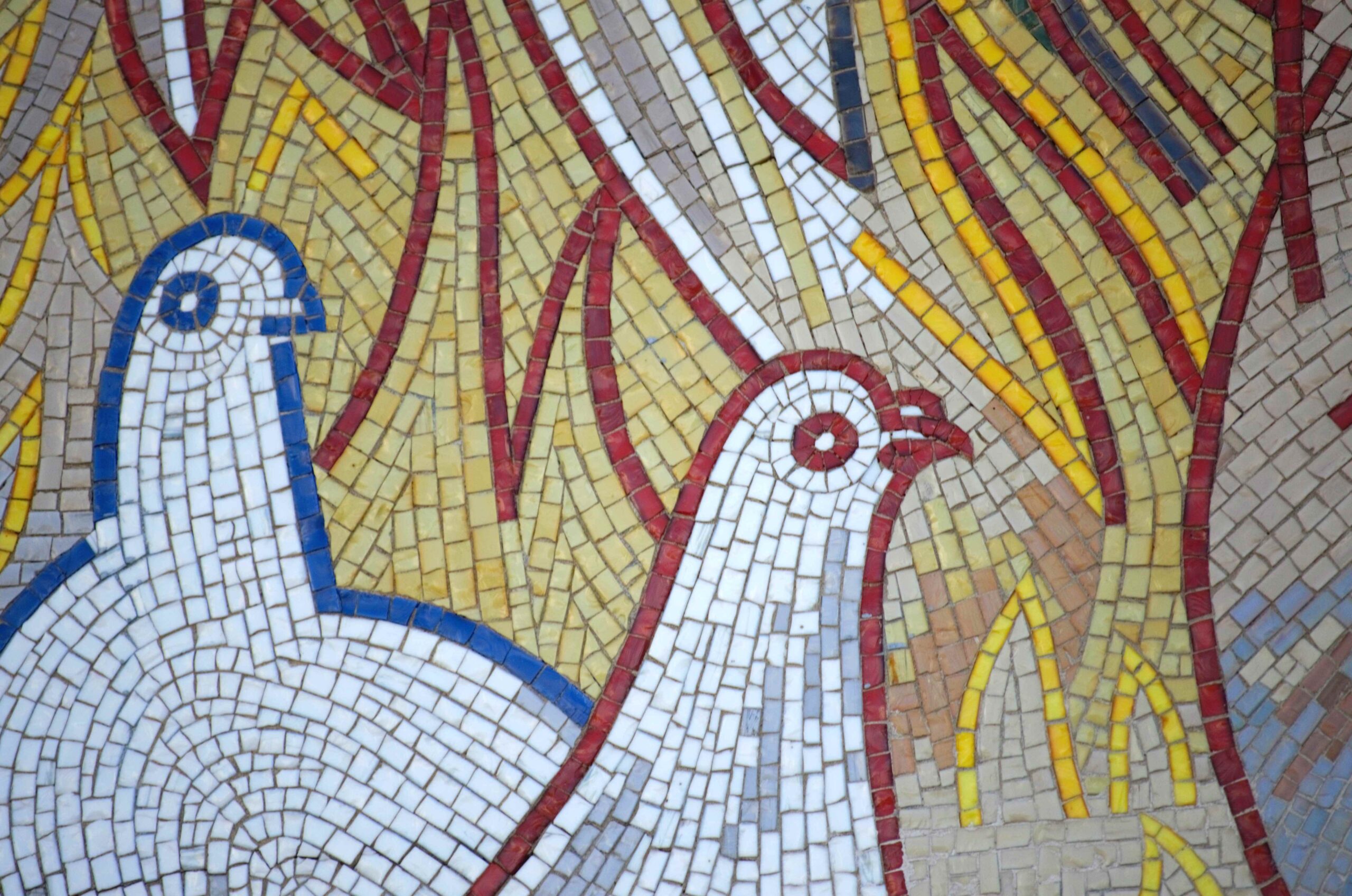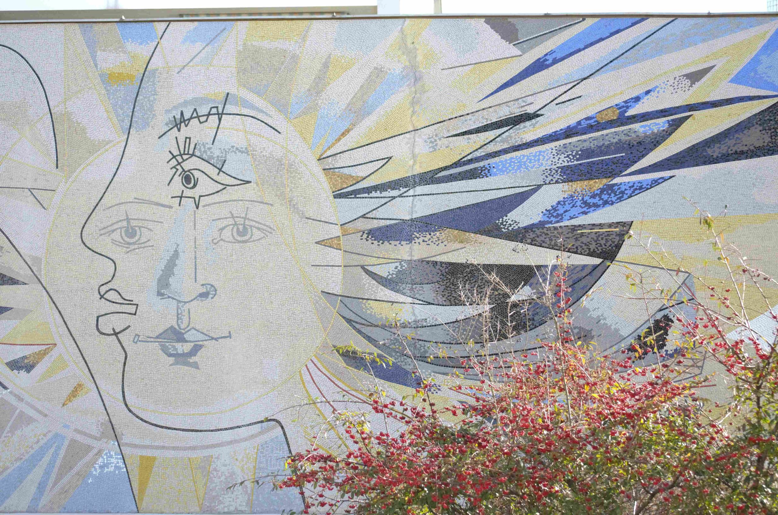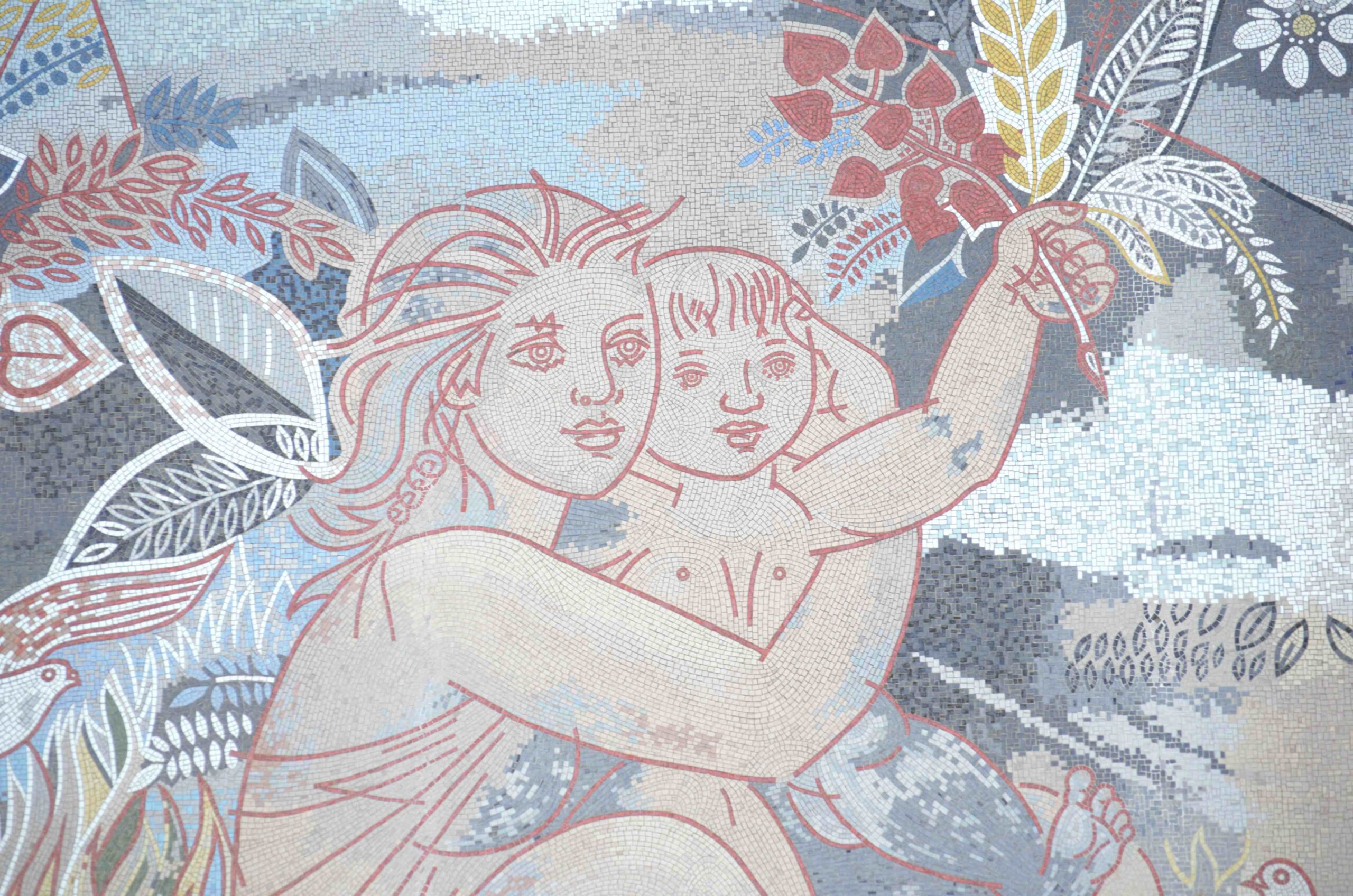 Der Künstler Walter Womacka, geboren in der Tschechoslowakei, wirkte vor allem in Berlin. Sein Werk zeichnet sich durch großformatige, architekturgebundene Kunst aus. Womacka gestaltete zahlreiche öffentliche Gebäude in der DDR und leitete von 1968 bis 1988 die Kunsthochschule Berlin-Weißensee. 1988 schuf er im Zuge der Gestaltung der Marzahner Promenade das Wandmosaik “Frieden”. “Formal beziehen sich die Mosaikbilder Walter Womackas auf die figurative Abstraktion der klassischen Moderne. Sie zeigen stilistische und motivische Bezüge zu Werken von Fernand Leger, Pablo Picasso und Henri Matisse. Womacka macht sich diese zu eigen und führt sie in seine Bildwelt ein.” (vgl. Goldberg 2008, Kunst in der Großsiedlung, S. 134).