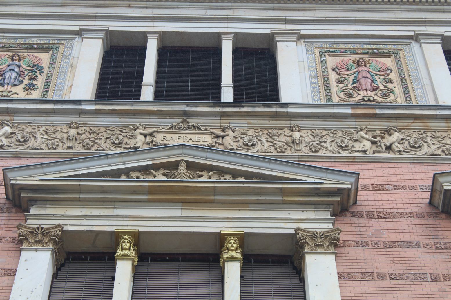 Ein dritter Terrakotta-Fries verläuft oberhalb des zweiten Geschosses der Nord-, Ost- und Westfassade des Martin-Gropius-Baus. Auch dieser Fries trägt Namenstafeln bedeutender Künstler und Architekten, wie Schlüter, Bötticher, Vischer und Raffael zwischen üppigen Voluten und Darstellungen verschiedener handwerklicher Tätigkeiten (Nicola Vösgen).