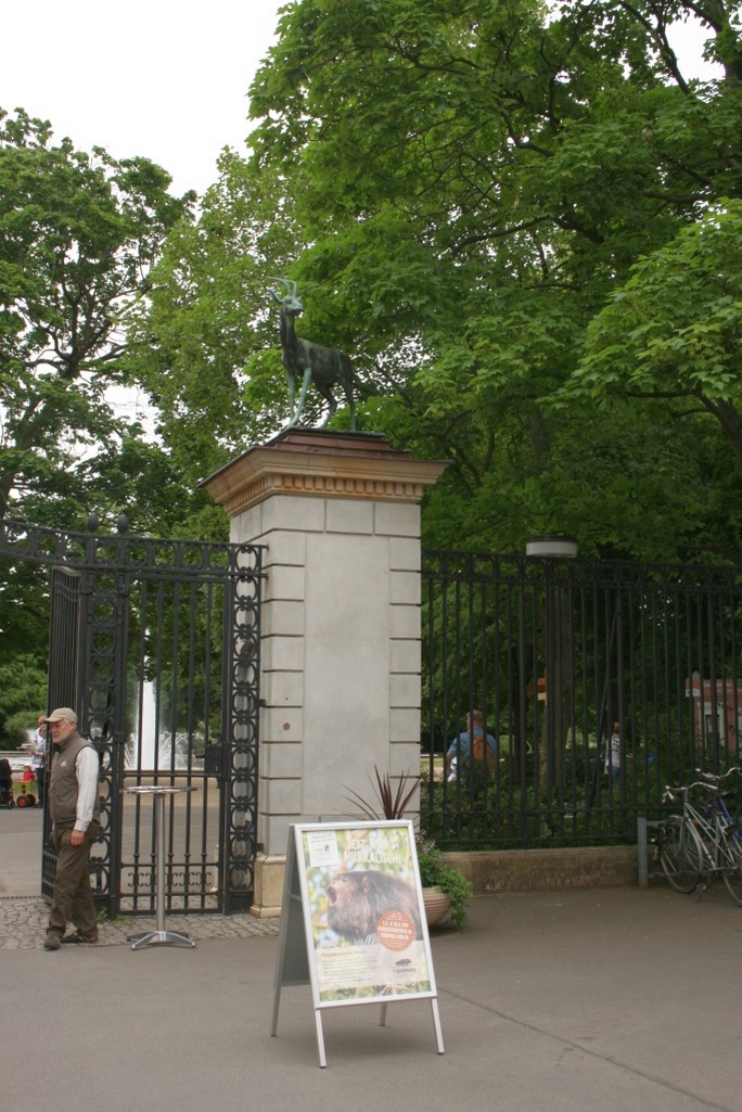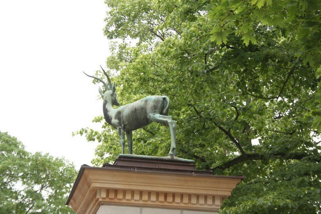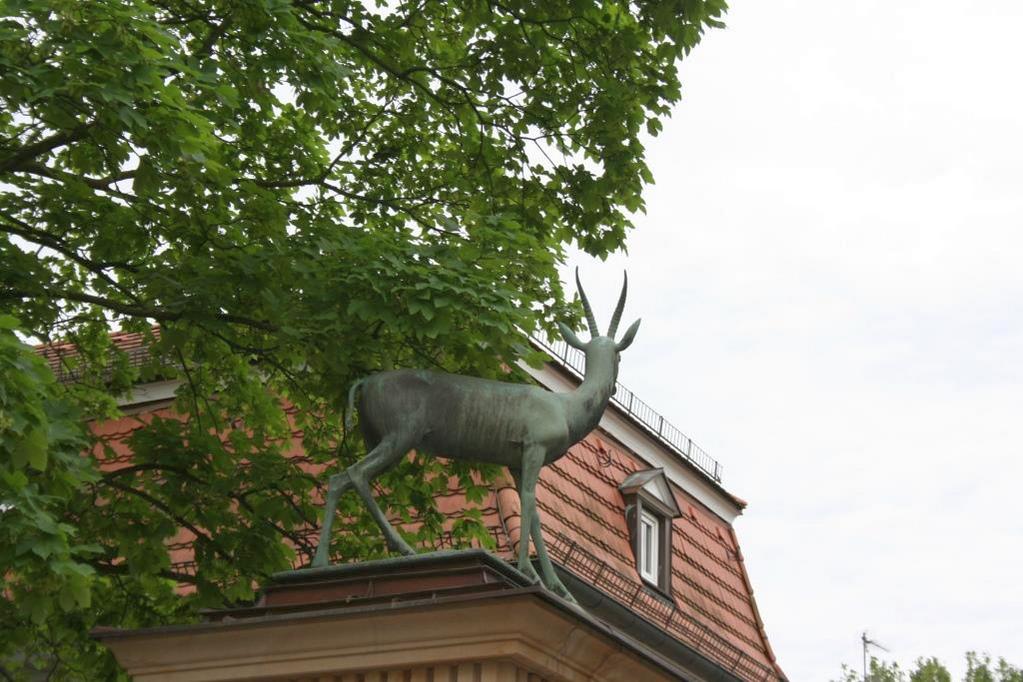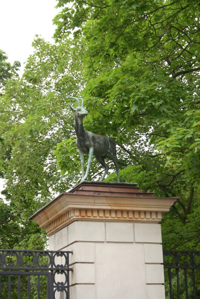 1846 schuf der renommierte Tierplastiker Wilhelm Wolff die überaus feingliedrigen Gazellenfiguren, die am Schloss Charlottenhof im Park von Sanssouci Aufstellung fanden und hier den Haupteingang betonen. Sutkowski schuf leicht größenreduzierte Nachschöpfungen dieser Plastiken für den Tierpark (Jörg Kuhn).