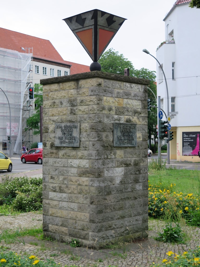 Südlich der Dorfkirche in der Möllendorffstraße (1976 bis 1990 Jacques-Duclos-Straße) steht auf dem ehemaligen Dorfanger, dem heutigen Loeperplatz (1890 bis 1914 Wilhelmplatz), eine Gedenkanlage für die Opfer des Faschismus (OdF). Ein hochrechteckiger Quader, der aus Natursteinquadern gemauert ist, trägt auf jeder Seite eine Metalltafel. Auf der südlichen Tafel steht in erhöhten Buchstaben die Inschrift: ZUM EHRENDEN / GEDENKEN / AN DIE ERMORDETEN / ANTIFASCHISTISCHEN / WIDERSTANDKÄMPFER / 1933 – 1945.