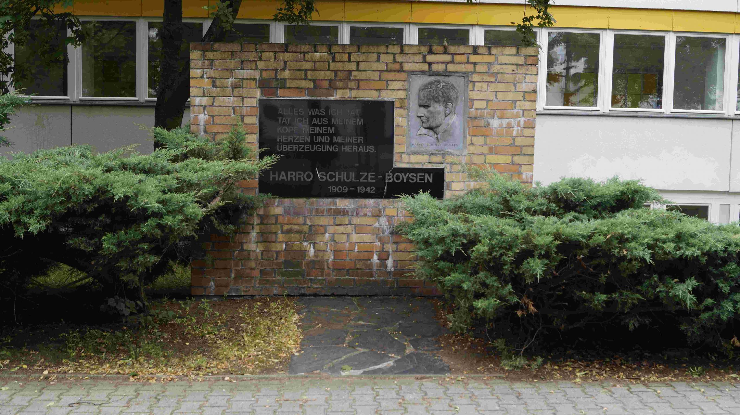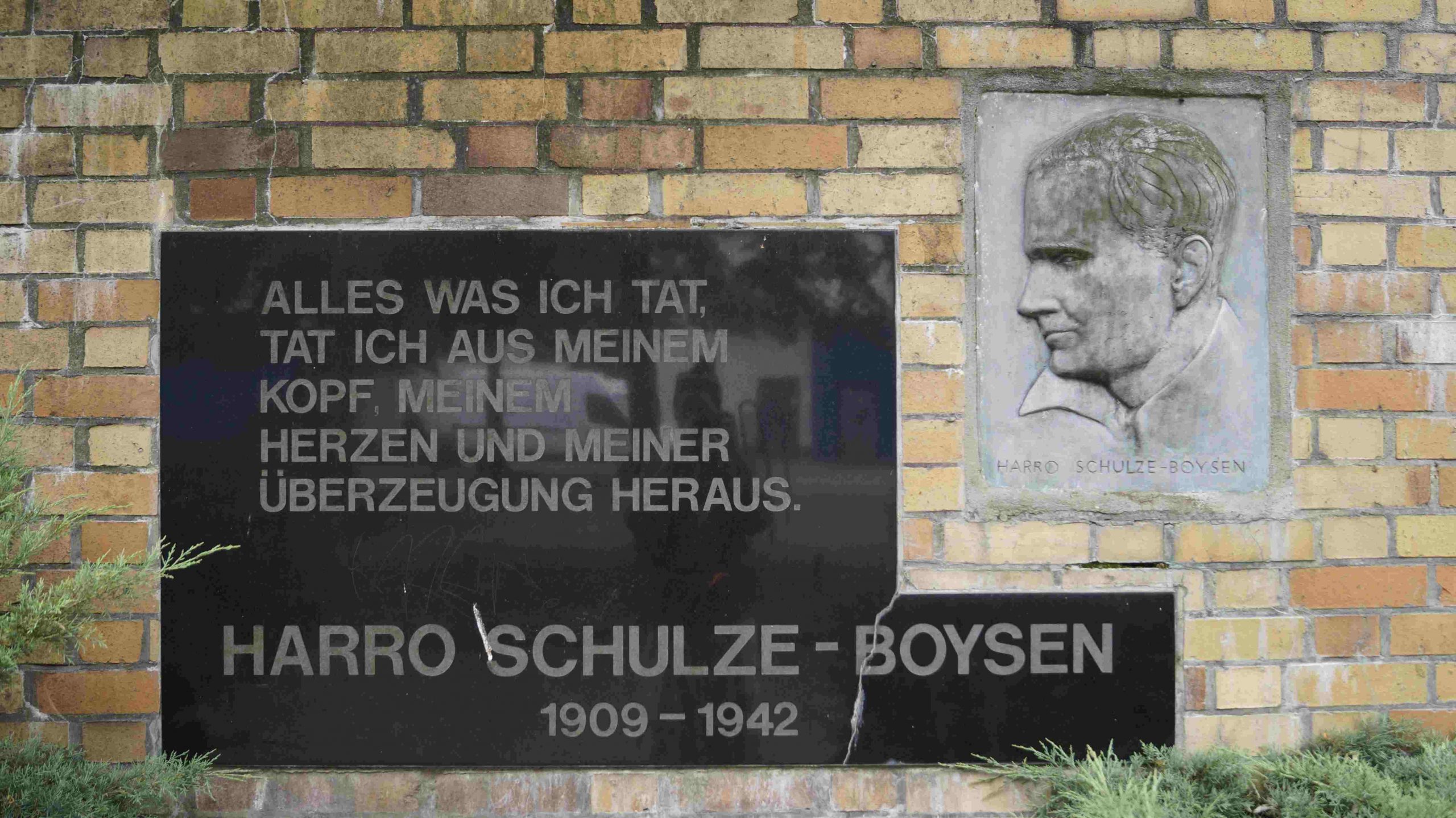 »ALLES WAS ICH TAT, / TAT ICH AUS MEINEM / KOPF, MEINEM / HERZEN UND MEINER / ÜBERZEUGUNG HERAUS. // HARRO SCHULZE-BOYSEN / 1909-1942«