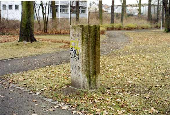 »PAUL MEBES / PARK / (an der östlichen Seite steht in gleicher Schrift:) PAUL MEBES / 1872   1938 / ARCHITEKT«