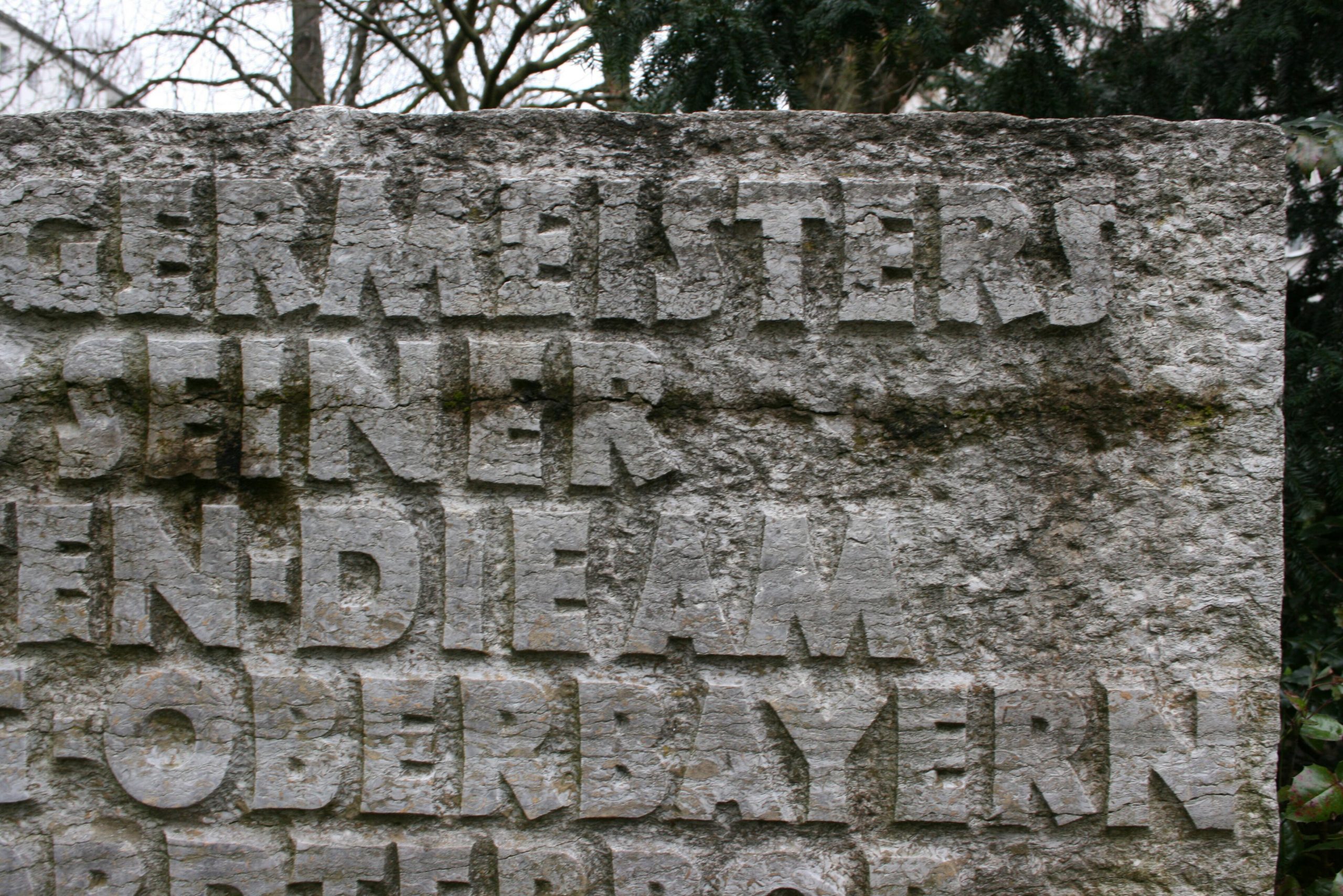 Inschrift (aus dem Stein herausgehauene, geglättete Buchstaben)