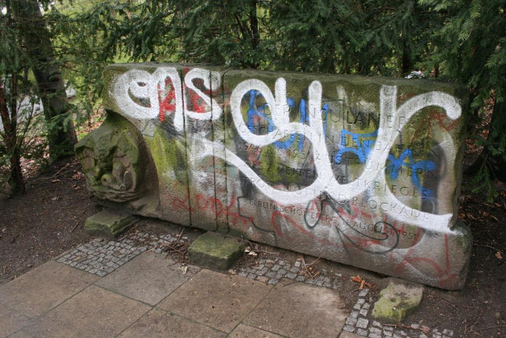 1951 aufgestellt zur Erinnerung an die Enttrümmerung Schönebergs und angrenzender Bereiche. Angeblich Spolie aus dem zerstörten Nordflügel des Schöneberger Rathauses. Gedenkstein von lokalhistorischer Bedeutung. Steht in inhaltlicher und auch gestaltungsverwandter Verbindung zu zahlreichen anderen Gedenkmalen in Berlin (West) und Ostberlin, die allesamt an die gewaltige Leistung der Enttrümmerung der Stadt Berlin nach dem Zweiten Weltkrieg erinnern. Am konkreten Ort erinnert der Gedenkstein an die Entstehung des „Insulaners“ aus Trümmerschutt (unter anderem Trümmerschutt aus der unweit gelegenen Lindenhofsiedlung) (Jörg Kuhn).
