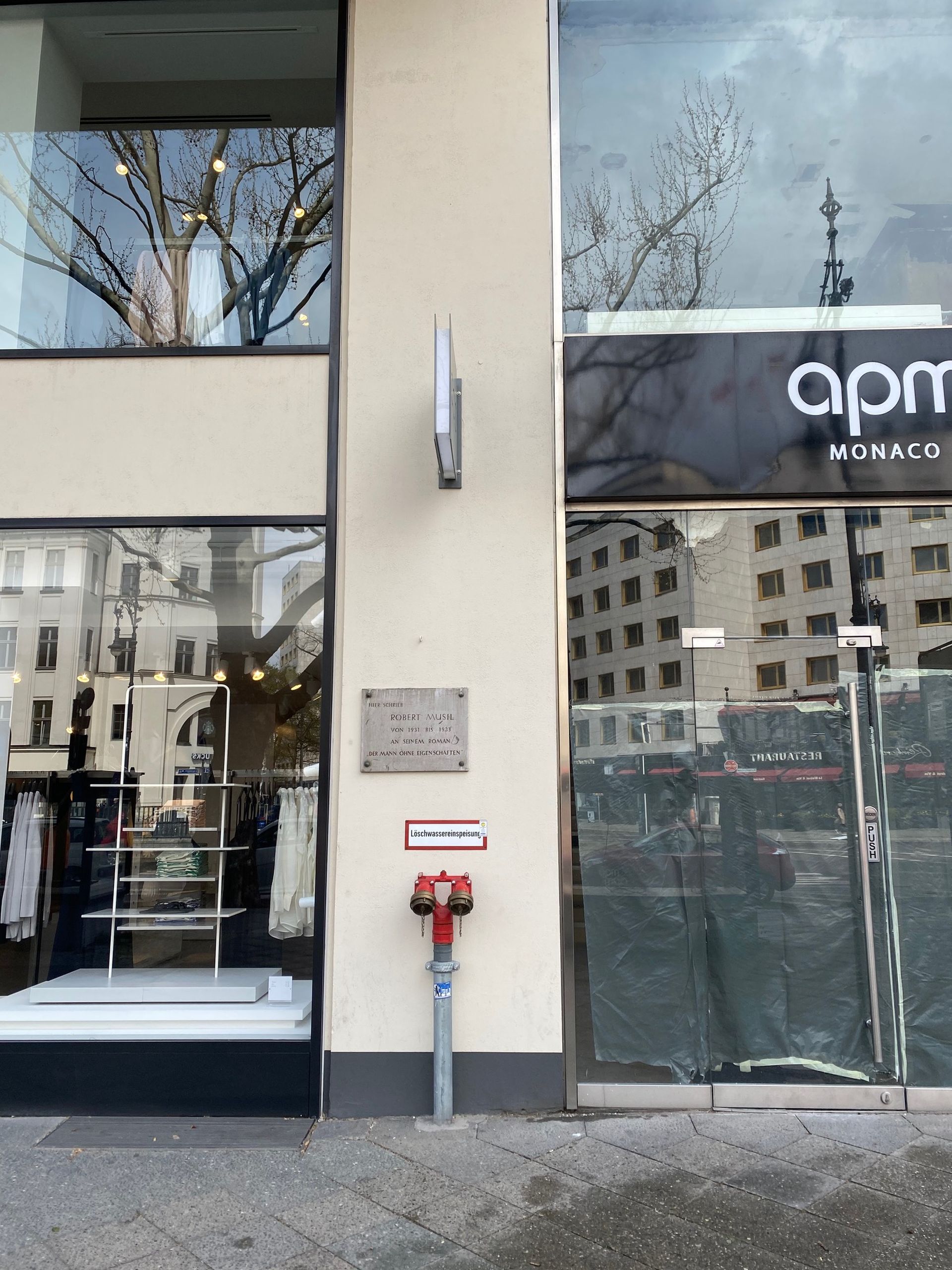 Die Tafel wurde im Rahmen des Programms „Berliner Gedenktafeln“ aufgehängt. Sie erinnert an den Schriftsteller Robert Musil, der von 1931-1933 an dieser Stelle in der „Pension Stern“ arbeitete und lebte. Musil schrieb dort an einem Teil seiner bekannten Buchreihe „Der Mann ohne Eigenschaften (Helene Lorenz)