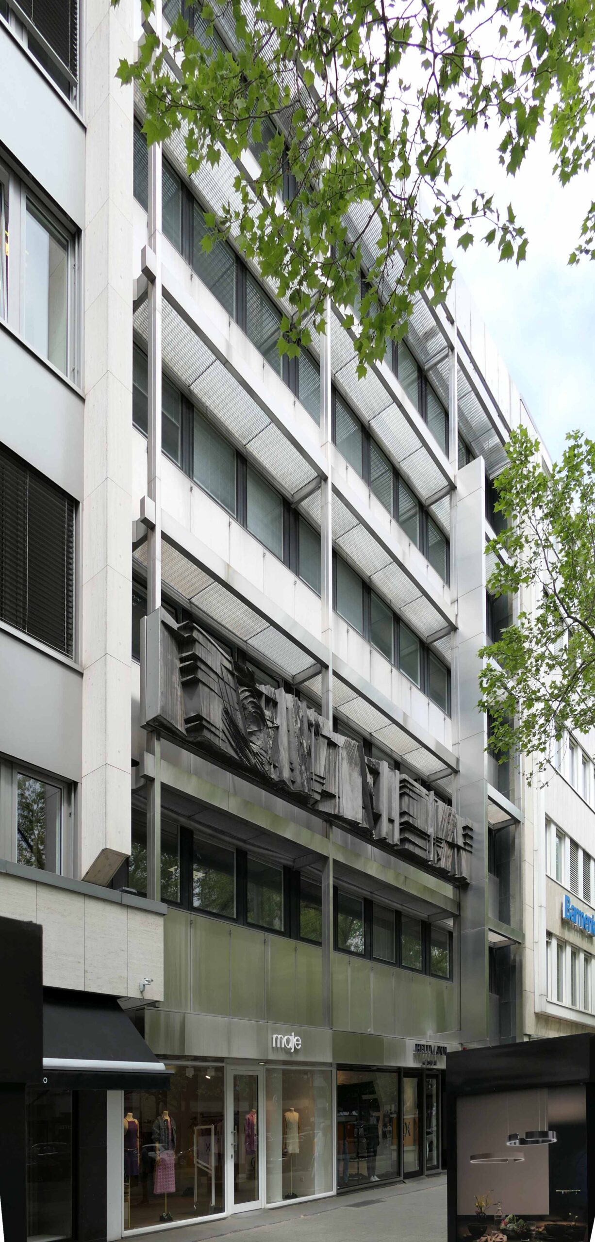 An der nördlichen Seite des Kurfürstendamms steht das sechsgeschossige Geschäftshaus mit gerasterter Fassade und Ladenpassage im Erdgeschoss (Nicola Vösgen).