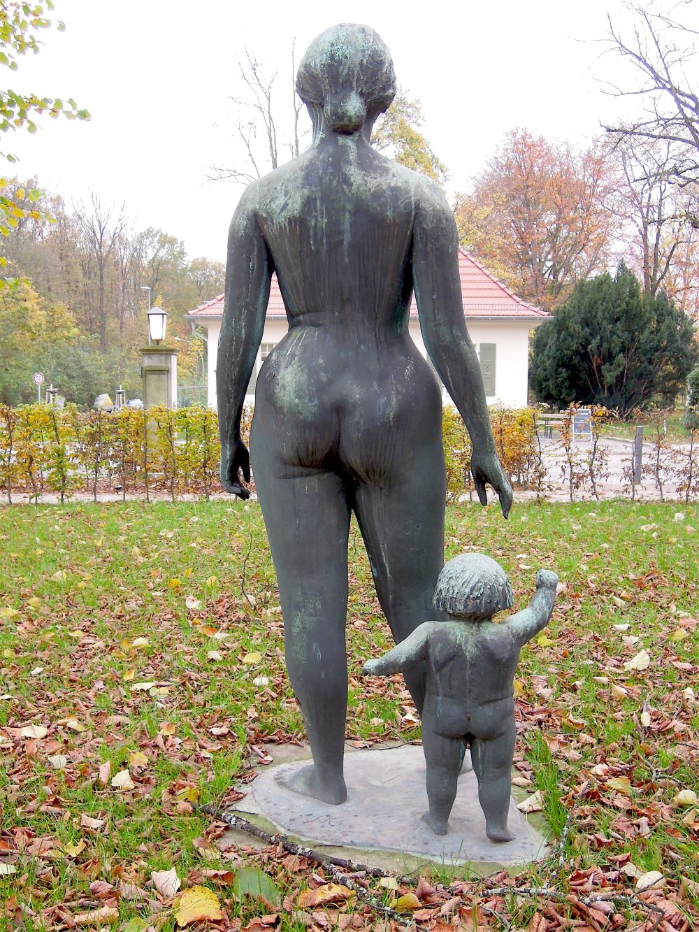 Die Gruppe besteht aus zwei sehr verschieden-altrigen Geschwistern: eine große Nackte (Schwester) mit kleinen nacktem Jungen (Bruder), der hinter seiner Schwester steht. Beide aufrecht auf der Plinthe stehend zeigen kräftige, üppige Formen. Die Schwester steht in einem leichten Kontrapost. Ihre Haare sind kappenartig zu einem Dutt zusammengefasst. Den Kopf jugendlich forsch erhoben blickt sie über den Betrachter hinweg (Jürgen Tomisch).