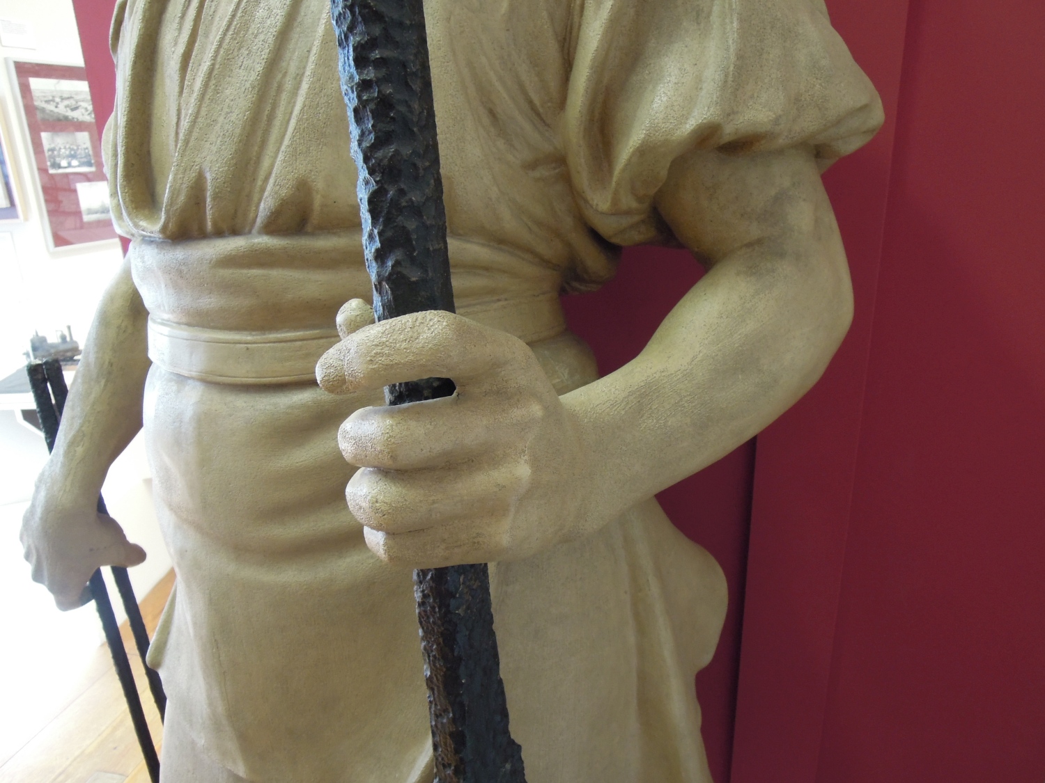 Beide Figuren sind vollplastisch ausgearbeitete Standbilder, was ein Hinweis auf ihre ursprünglich freistehende Aufstellung ist. Sie wurden im Zinkhohlgussverfahren hergestellt und produktionsbedingt aus mehreren Einzelteilen durch Lötung zusammengesetzt. Dies ist stellenweise gut erkennbar. Sie sind mit einer farbigen Oberflächenbehandlung versehen, die Sandstein vortäuschen soll. Zur Befestigung an ihren früheren Standorten diente je ein Metallzapfen unter den Füssen. Im Inneren der Figuren befand sich eine ebenfalls angelötete Stützkonstruktion aus Rundeisen. Eine Halterung auf Gürtelhöhe kam erst bei der Restaurierung 1990 hinzu (Jürgen Tomisch, Barbara Anna Lutz).