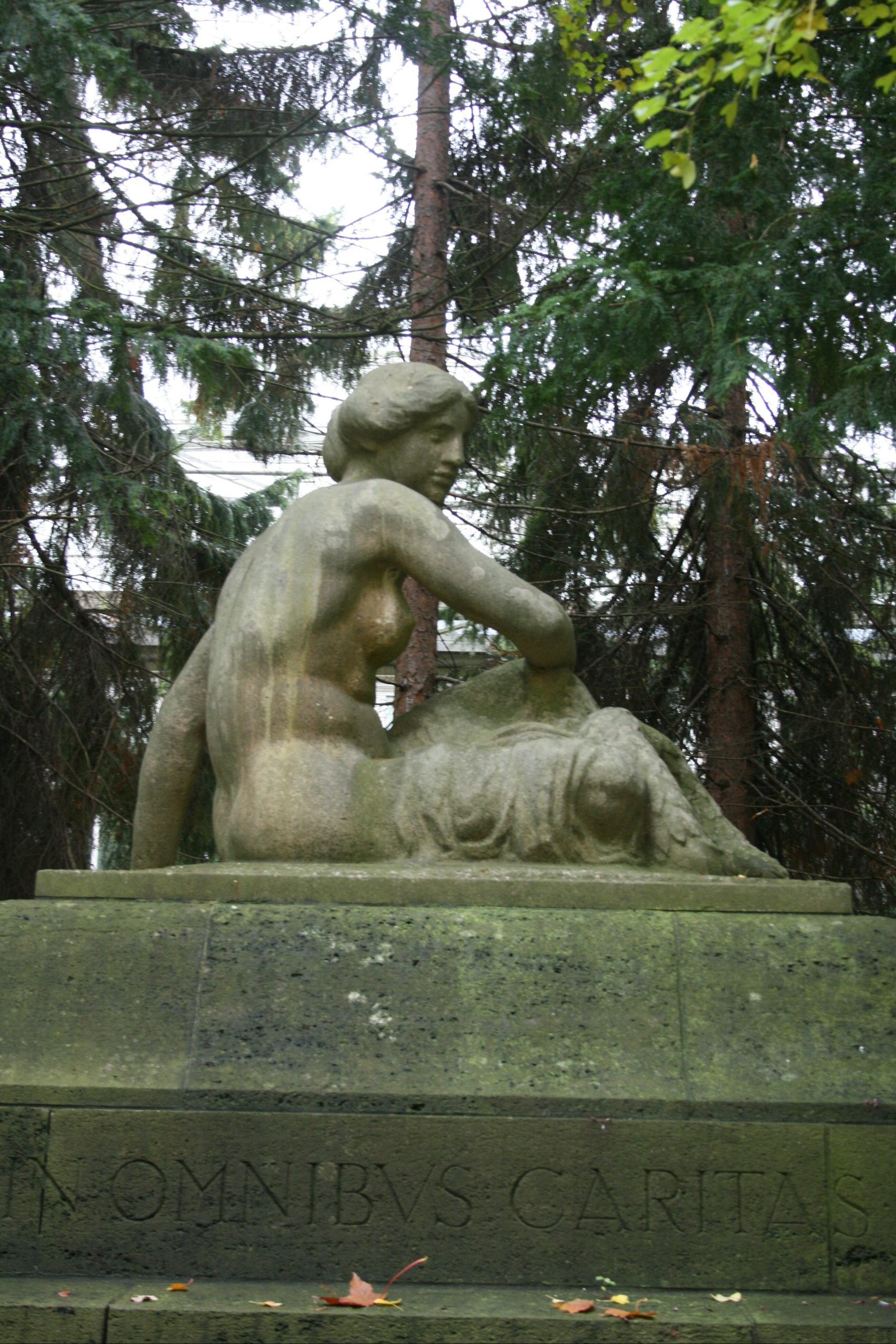 Das Grabmal befindet sich im Ehrenhain im Botanischen Garten unweit der großen Gewächshäuser. Der Jurist Friedrich Theodor Althoff (19.2.1839-20.10.1908), Ministerialdirektor im Preußischen Kultusministerium, war einer der einflussreichsten Kulturpolitiker des preußischen Kaiserreichs. Er, der von 1882-1907 der Hochschulabteilung des Ministeriums vorstand, gilt als führende politische Kraft bei der Verlagerung des Botanischen Gartens aus Schöneberg nach Dahlem. 1907 wurde Althoff im Auftrag des preußischen Kultusministeriums von Fritz Schaper (1841-1919) porträtiert (Büste in der Sammlung des Botanischen Museums; hiernach 1990 ein Abguss für den Althoffplatz, vgl. Objekt-Nr. 33), weitere Ehrungen folgten. Entsprechend seinem Rang und seiner Bedeutung erhielt er nach seinem Tod 1908 ein vermutlich vom preußischen Staat veranlasstes, vielleicht von Prof. Adolf Engler angeregtes, Begräbnis auf dem Gelände des Botanischen Gartens. Im Lageplan des Botanischen Gartens von 1908 ist die Grabstätte bereits eingezeichnet. In einer gewissen Entsprechung zu den Grablegen der Großgrundbesitzer in den Parken ihrer Güter, erhielt Althoff eine repräsentative Grabanlage an einer nicht zentralen Stelle im Park, jedoch inmitten einer aktiven, das heißt aus wissenschaftlichen Überlegungen heraus angelegten Abteilung (ehem. Biologisch-Morphologische Abteilung I), und nicht an einer reinen Schmuckstelle. Offenbar war die Sichtbeziehung zwischen Grablege und Schauhäusern beabsichtigt, auch wenn eine gewisse Hinterpflanzung der Grabanlage vorgenommen worden ist, wie eine bald nach Fertigstellung um 1911 gemachte Aufnahme (vgl. Henker, Grabmalskunst, 6. Folge, Tafel 28; Schoenichen, 1929, S. 3) belegt. Die ganze Anlage liegt erhöht und ist vom Erschließungsweg nur über einen modern angelegten Pfad zu erreichen. Der Berliner Architekt Franz Seeck (1874-1944), ein führender Vertreter der Grabmalreform und Mitbegründer der reformorientierten Werkstätten für Grabmalskunst in Tempelhof (im Bereich der Steinmetzfirma Carl Schilling), und der Berliner Bildhauer Hans Krückeberg (auch geschrieben zu finden als: Krückenberg) sind die namentlich bekannten Schöpfer der Grabanlage. (Jörg Kuhn)