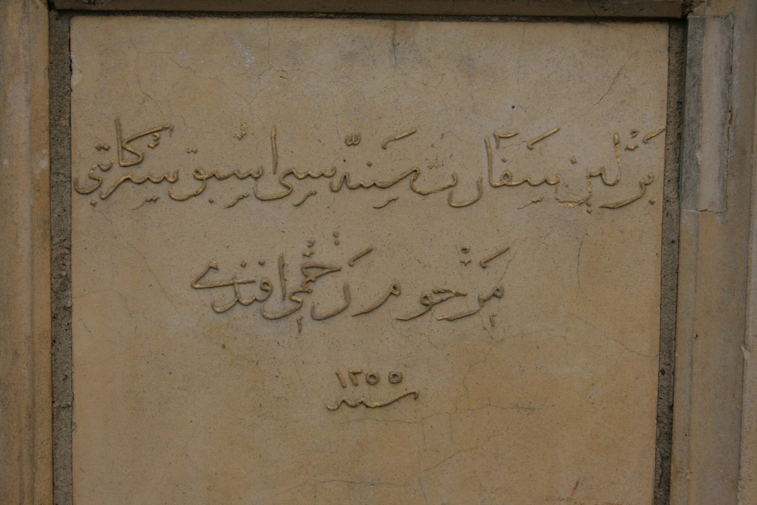 »verschiedene Inschriften in arabischer Schrift zu den fünf in der Gruft unter dem Monument beigesetzten Toten usw.«