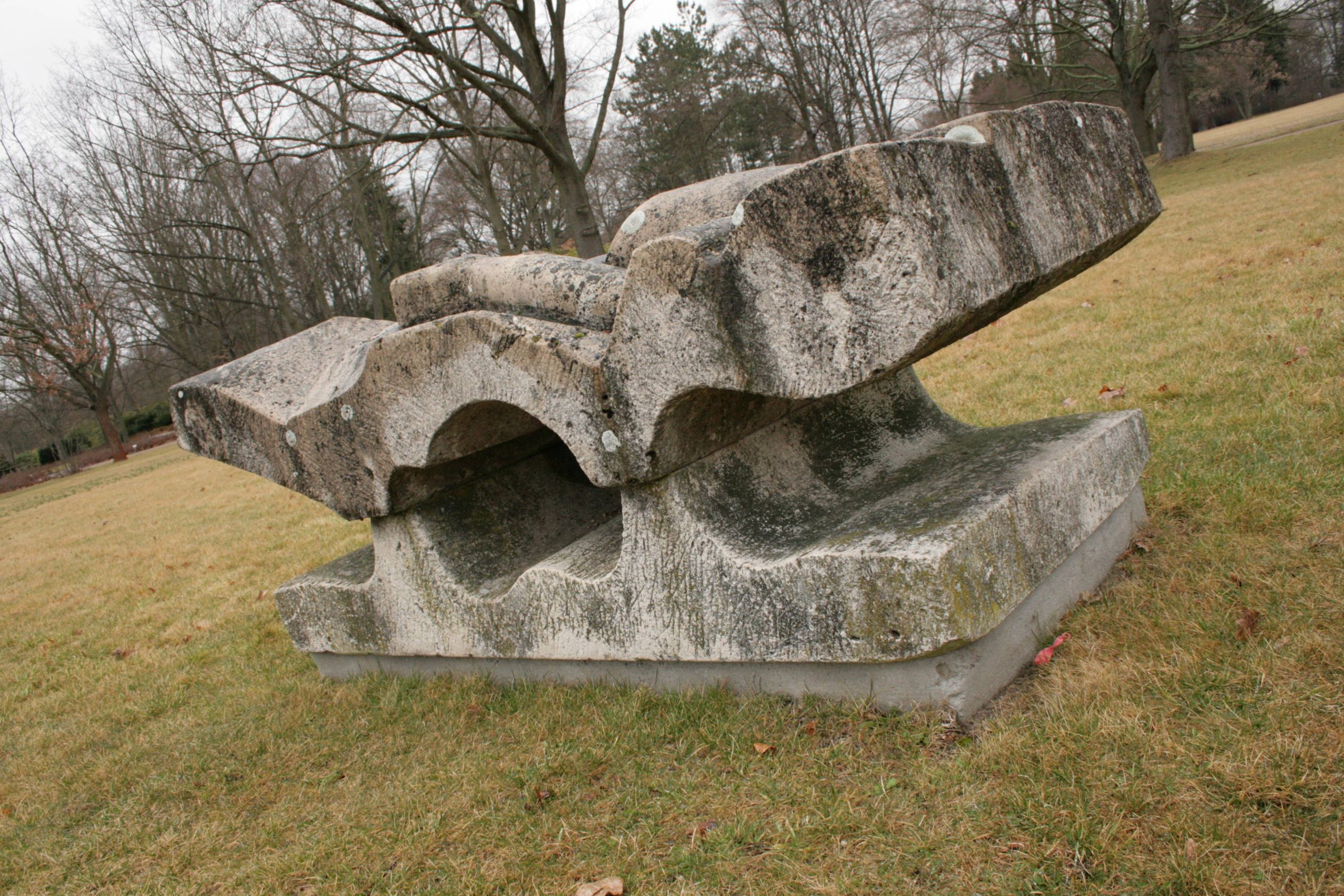 Nahe dem Rhododendrengarten und dem Parkfriedhof Neukölln im südlichen Teil des Britzer Parks stehen sechs Skulpturen und Plastiken, die das Thema „Grabzeichen“ behandeln. Auf einem rechteckigen flachen Betonsockel ruht eine blockhafte, zweiteilige Skulptur aus Kalkstein. Die beiden flachen Steine aus denen sie bestehen, ruhen in horizontalen Lagen übereinander, dazwischen befinden sich – bedingt durch die zum Teil wellenförmige Gestalt der Steinplatten – starke Aushöhlungen. Die obere Lage zeigt an ihrer Oberseite einen fragmentierten und teils zugedeckten menschlichen Körper, von dem das rechte Bein und der linke Arm besonders deutlich zu erkennen sind (Susanne Kähler, Jörg Kuhn).