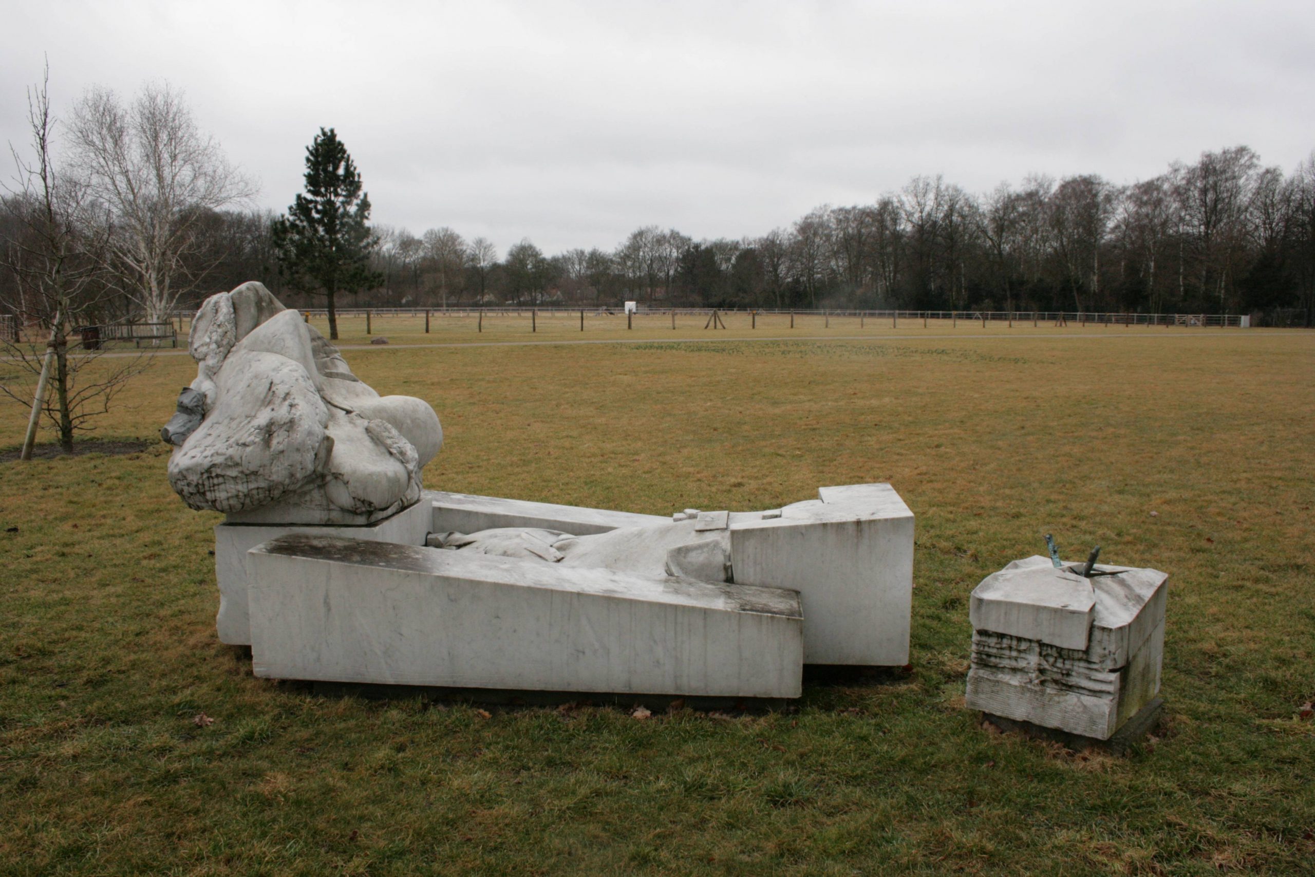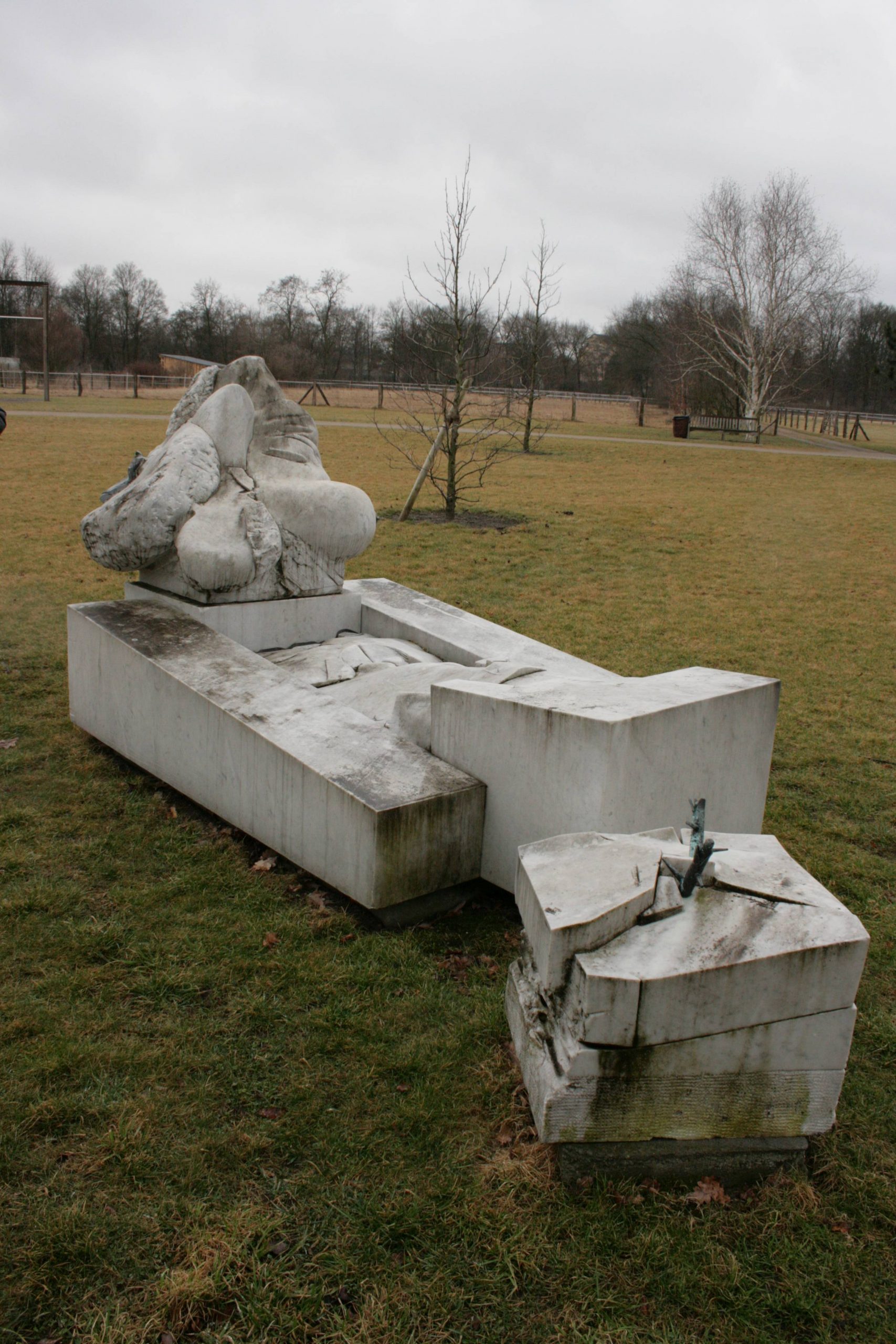 Entstanden anlässlich der Buga 1985 (Marc Wellmann). Die aus Marmor und Metall über einem Betonfundament errichtete Skulptur entstand als Wettbewerbsbeitrag von Peter Herbrich für die Erstausstattung des Britzer Gartens als Bundesgartenschau Berlin 1985. Verschiedene Künstler haben sich mit dem Thema Geburt, Leben, Sterben, Tod beschäftigt und für den Park „Grabzeichen“ geschaffen. „Kaum geboren – schon gestorben. Der Raum, die Zeit und die Pausen zwischen den Sternen. Im Leben das Staccato menschlicher Schicksale und Verzweiflungen (sic!), Geburt, Freude, Liebe, Schmerz, Tod. Vielleicht eine Blume am Fuße des Grabes“ (Kunst im Park, 1985, S. 52). „Peter Herbrich: ‚Grabstelle‘. Die Verbindung figürlicher und architektonischer Elemente und der Materialien Marmor und Bronze regt zu Gedanken über die Stationen menschlichen Lebens an“ (Endlich/Wurlitzer, 1990, S. 64) (Zusammemngestellt von Jörg Kuhn, Susanne Kähler).