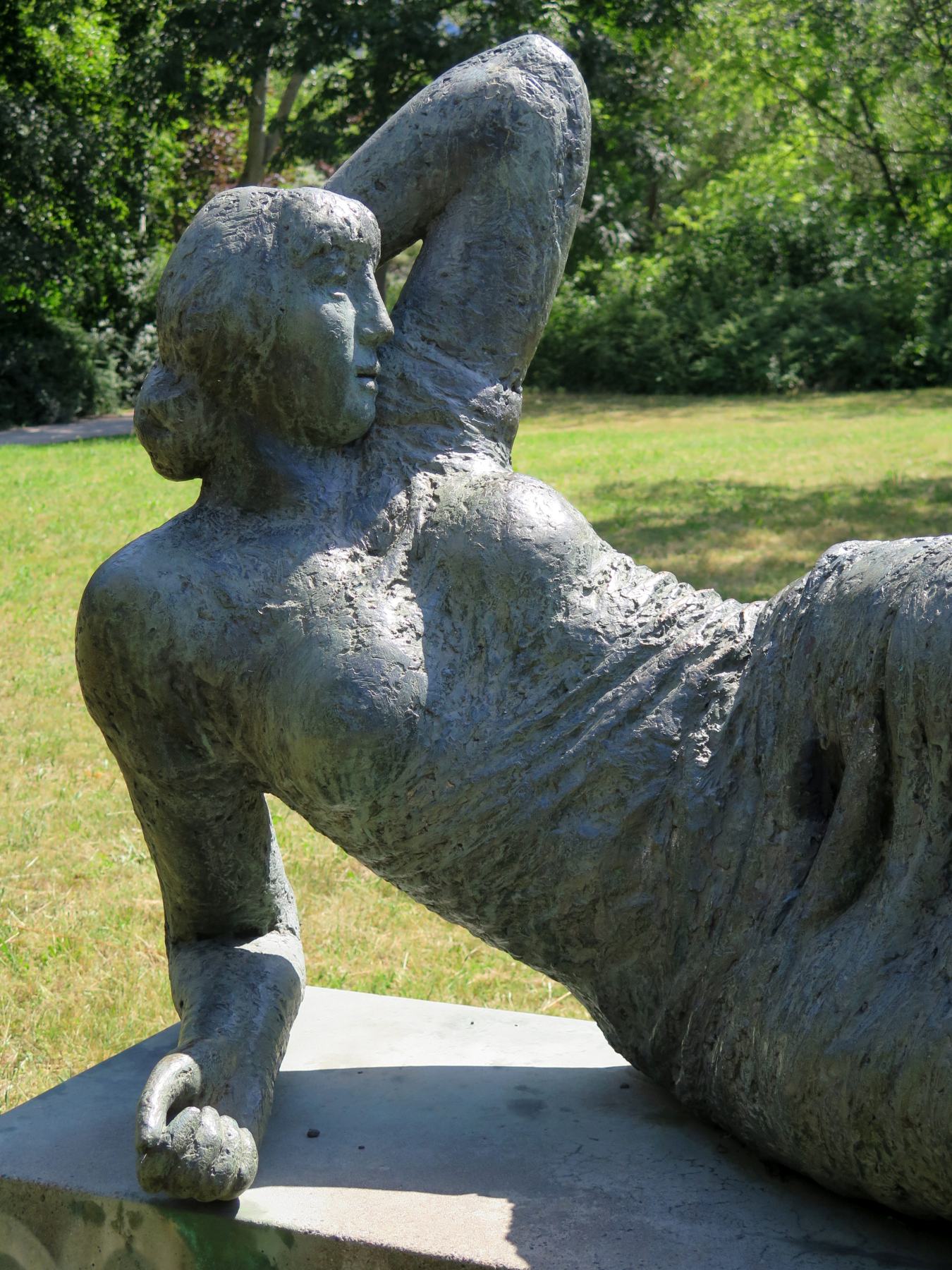 Bekleidete weibliche Figur auf einem rechteckigen, unten umlaufend eingezogenen Betonsockel. Am nördlichen Eingang zum Fennpfuhlpark direkt vor den Punkthochhäusern befindet sich die Bronzeplastik einer überlebensgroßen liegenden Frau. Die üppige Frauengestalt liegt seitlich auf der rechten Hüfte und stützt den erhobenen Oberkörper auf dem rechten Arm ab. Den linken Arm hat sie im Nacken verschränkt. Der Blick ist träumerisch in die Ferne gerichtet. Unter dem eng anliegenden Kleid zeichnen sich die Körperformen deutlich ab.