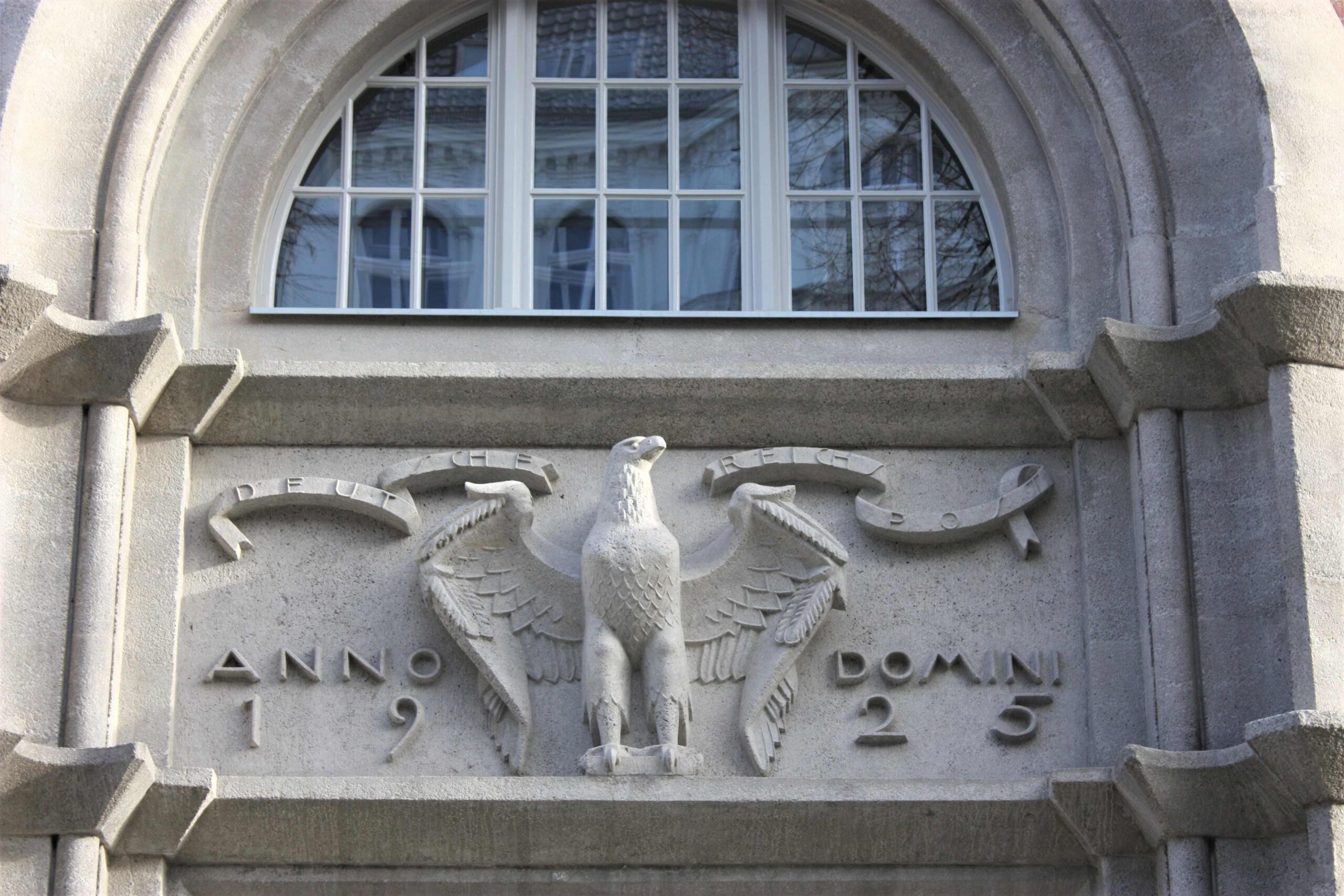 Im Zuge der Errichtung des Postamtes 30 unter dem Oberpostbaurat Willy Hoffmann schuf der Bildhauer Hans Schmidt 1925 die Gestaltung des Hauptportals mit dem Halbrelief eines Reichsadlers und Schriftband.