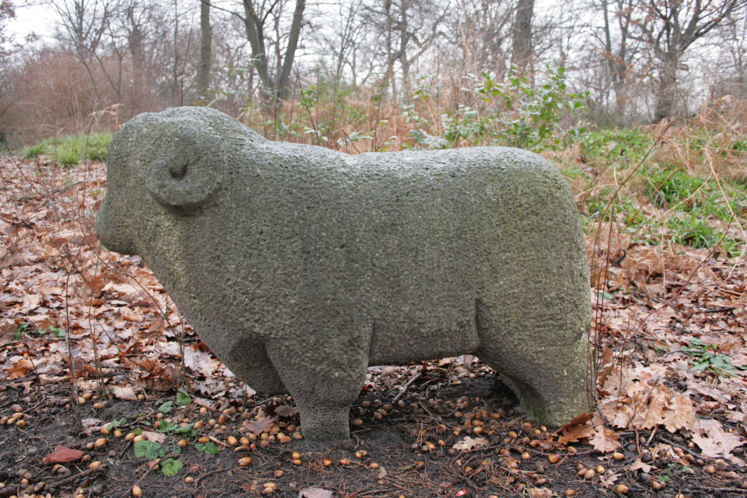 Die kompakt blockhaft gestaltete Muschelkalkskulptur zeigt eine auf allen Vieren stehende Heidschnucke mit parallel gestellten Hufen und erhobenem Kopf. Abgesehen von der Wiedergabe der charakteristischen schneckenförmigen Hörner hat der Bildhauer weitgehend zugunsten einer summarischen Gestaltung auf die Wiedergabe von Details verzichtet. Die Oberfläche ist durch Stocken strukturiert (Susanne Kähler).