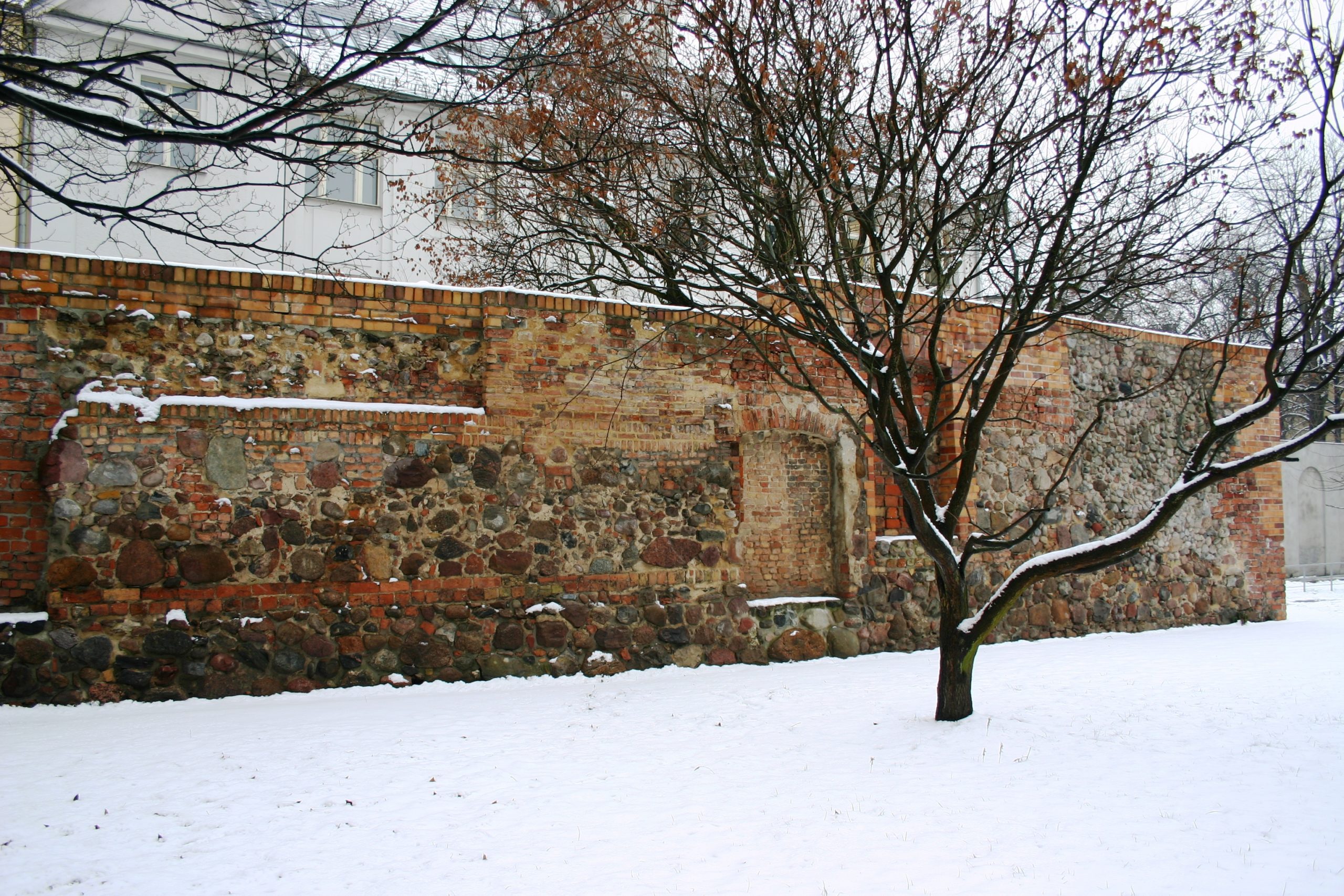 Die zwischen 1250/1260 und 1280/1290 in unregelmäßigem Feldsteinmauerwerk errichtete Stadtmauer wurde 1319 erstmals erwähnt. Im 14. Jahrhundert erfolgte eine Ausbesserung und Erhöhung auf vier Meter mit roten gebrannten Ziegeln im Klosterformat. In der 2. Hälfte des 17. Jahrhunderts verlor die Mauer weitgehend ihre fortifikatorische Funktion und wurde beidseitig mit Wohnhäusern besetzt, die die Mauer teilweise mit in ihre Architektur einbezogen. Durch die Zerstörungen im Zweiten Weltkrieg und die nachfolgende Beräumung der „Mauer-Grundstücke“ im Jahr 1948 konnte ein Teil der Mauer freigelegt werden. Sie wurde konserviert und in eine Grünanlage einbezogen. Eine an der Mauer angebrachte, rechteckige Bronzetafel informiert mit ihrer erhaben gegossenen Inschrift über die Bedeutung des mittelalterlichen Denkmals (Jörg Kuhn).