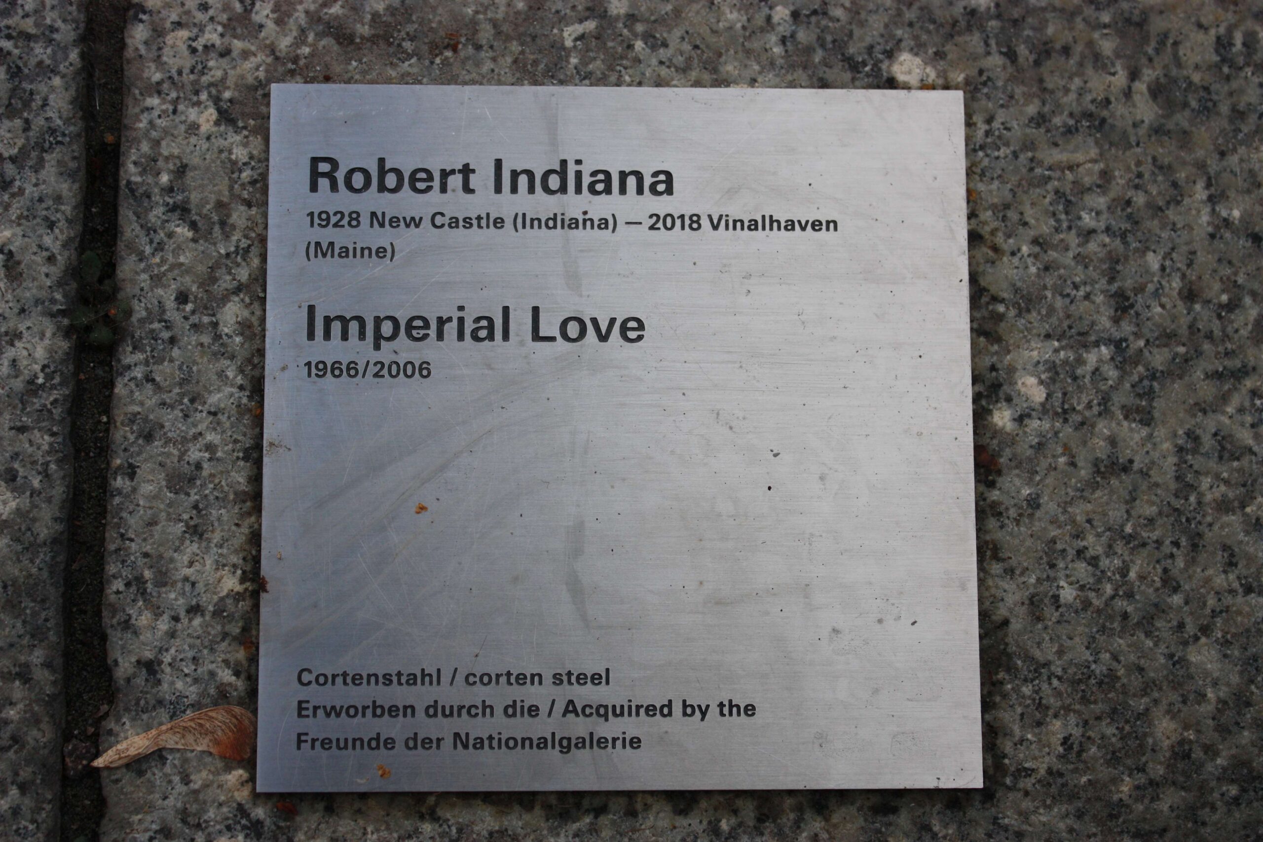 »Robert Indiana / 1928 New Castle (Indiana) - 2018 Vinalhaven / (Maine) / Imperial Love / 1966/2006 / Cortenstahl/corten steel / Erworben durch die/Acquired by the / Freunde der Nationalgalerie«