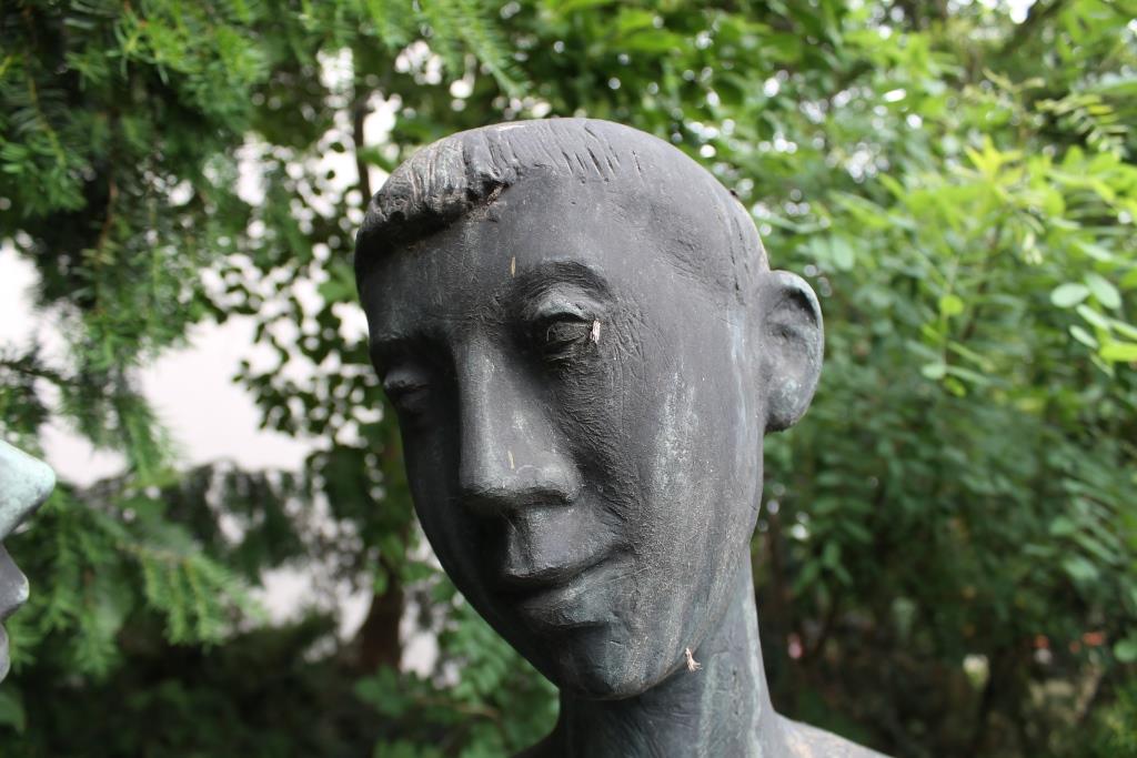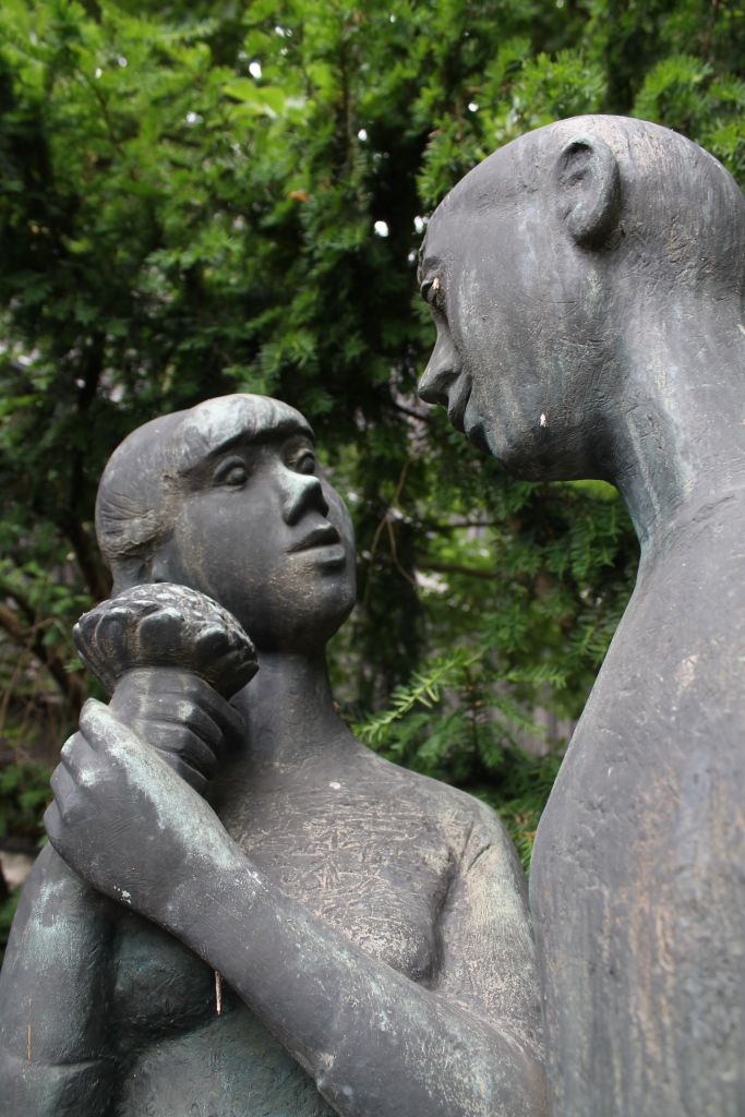 Diese vollplastische Figurengruppe besteht aus einem einander zugewandt stehenden jungen Paar. Das Mädchen hält mit beiden Händen umschlossen einen Blumenstrauß, der ihr anscheinend gerade geschenkt wurde und baut verzückt Blickkontakt zu ihm auf. Er hingegen schaut verlegen und verschränkt die Arme hinter dem Rücken. Die Gestik der beiden wirkt schüchtern, etwas unbeholfen, aber dennoch sehr liebenswürdig (Sandra Richter).