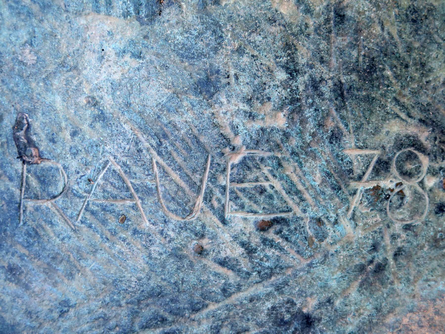 verfärbt (Sockel, 2019), ausgewaschene Patina