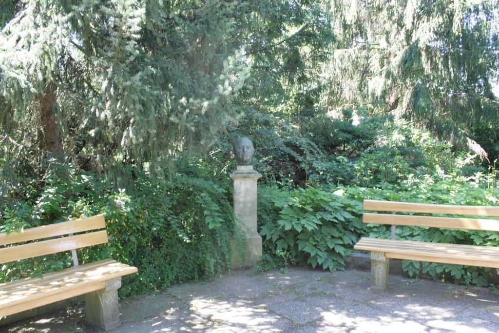 Büstendenkmal für Karl Foerster (gestorben 1970) hier im nach ihm benannten Garten 1974 aufgestellt.
