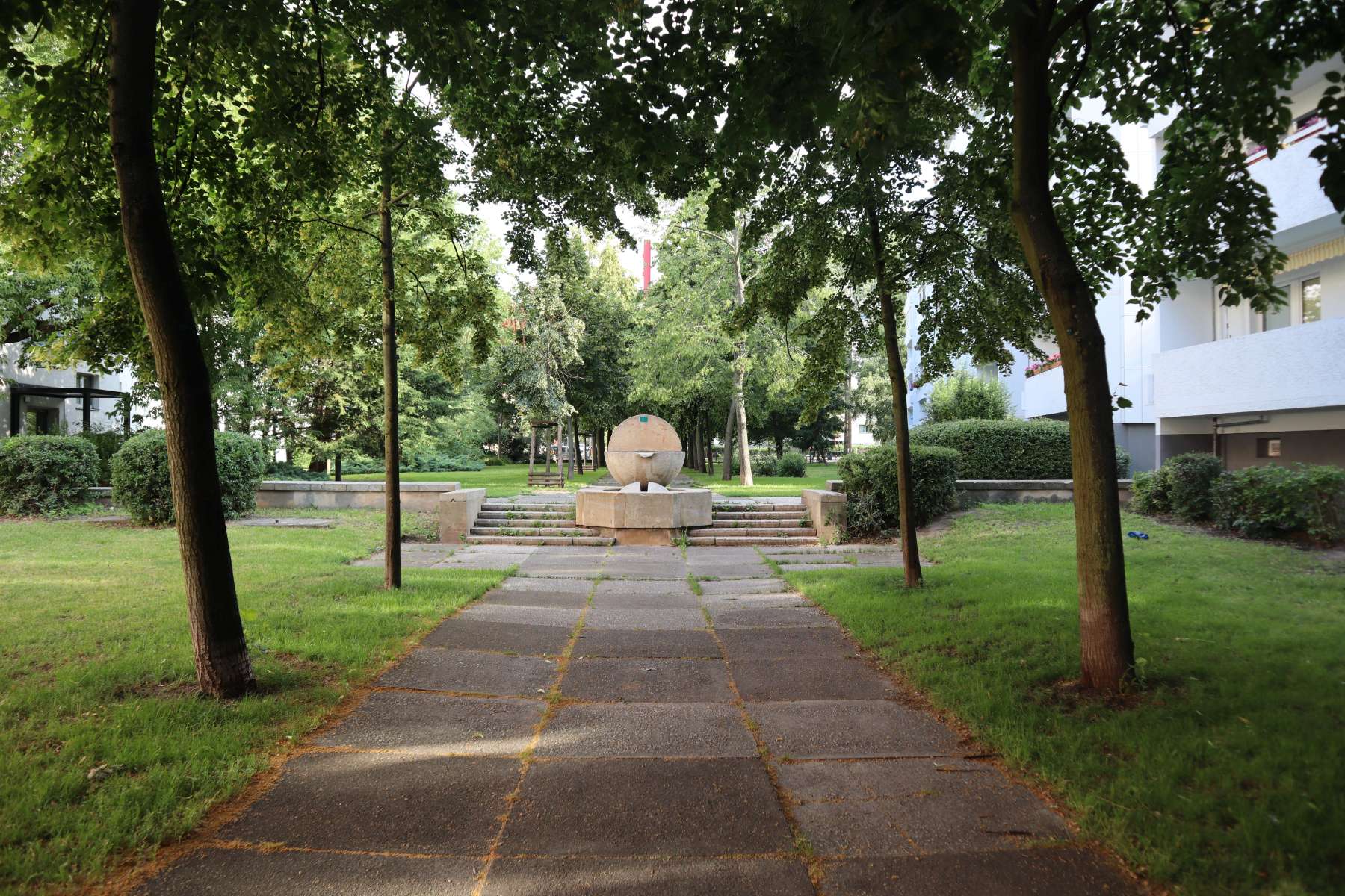 Der "Kugelbrunnen" oder auch "Kleiner Brunnen" wurde von Hannes Warscycek (Architekt) und Horst Scholz (Bildhauer) 1987 geschaffen. Nach einem Rohrbruch im Jahr 2013 bis 2016 wurde der Brunnen wieder instandgesetzt (Koray Mendi).