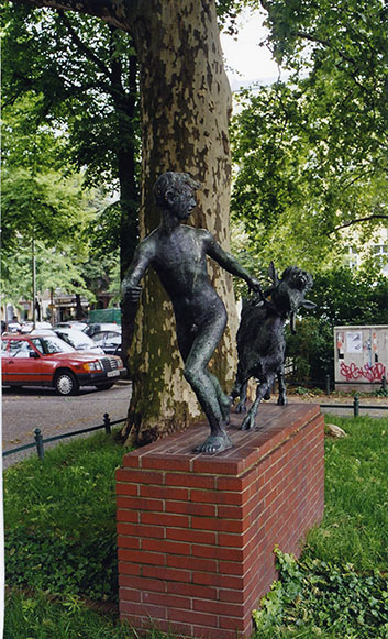 Es handelt sich um zwei Gruppen, jede aus einem laufenden, unbekleideten Knaben und einer von ihm am Strick hinter sich her gezogenen Ziege bestehend. Die beiden Gruppen sind (und waren auch im Original) formgleich, wirken aber durch die gegenläufige parallele Anordnung unterschiedlich. Sie stehen seit 1985 wieder auf gemauerten Klinkersockeln in der um 1985 rekonstruierten Schmuckgartenanlage des Savignyplatzes (Jörg Kuhn, Susanne Kähler).