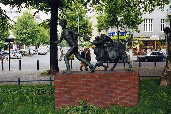 Erstaufstellung 1931. Eine Gruppe nur als Abguss von 1985 vorhanden. 1955 Wiederaufstellung der erhaltenen Gruppe, seit 1985 wieder beide Gruppen in historischer Anordnung aufgestellt. Um 1996 Reinigung.