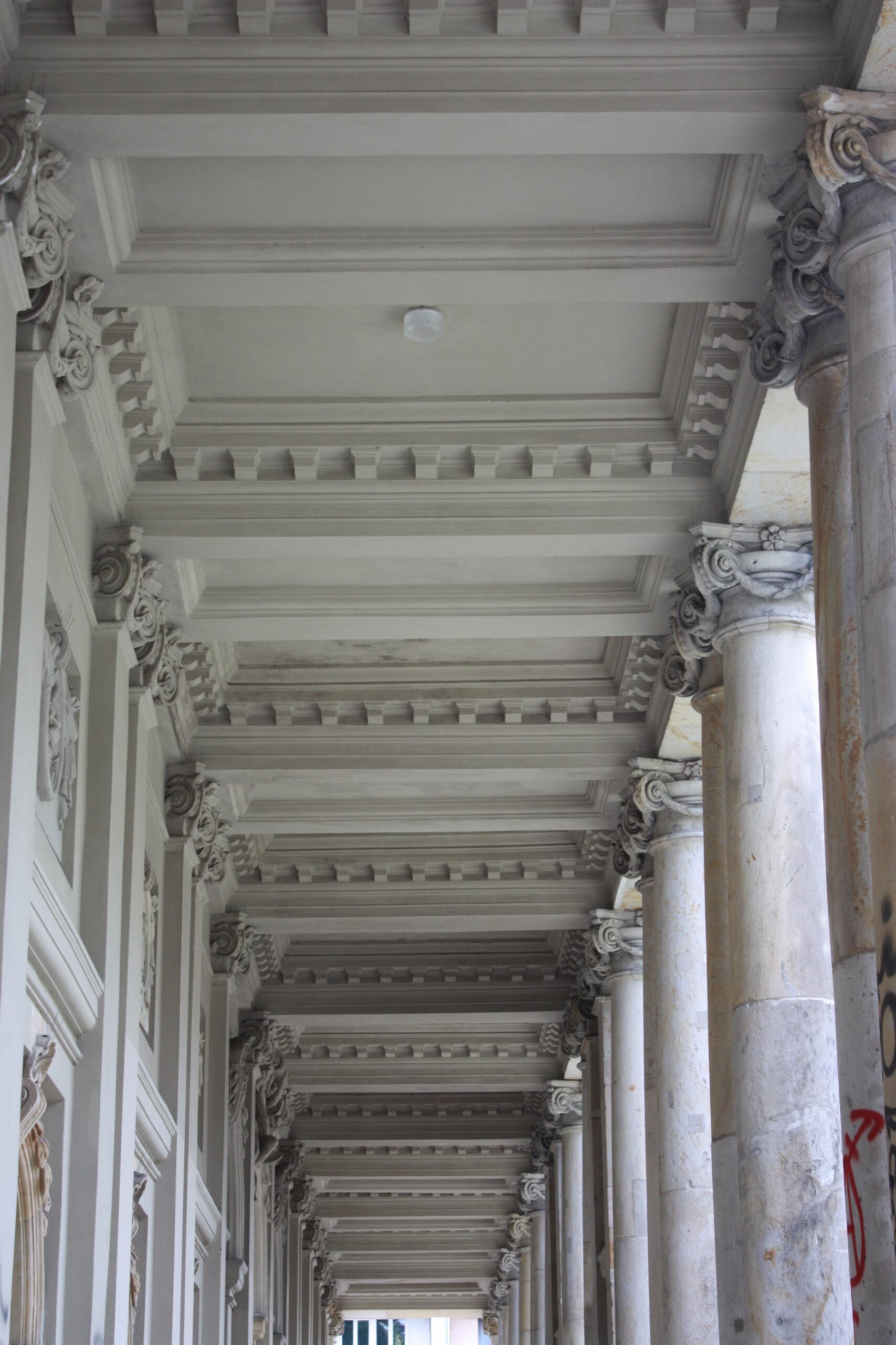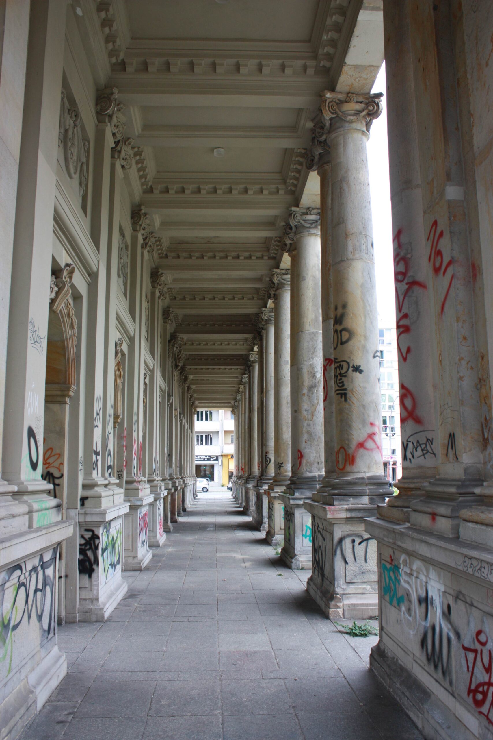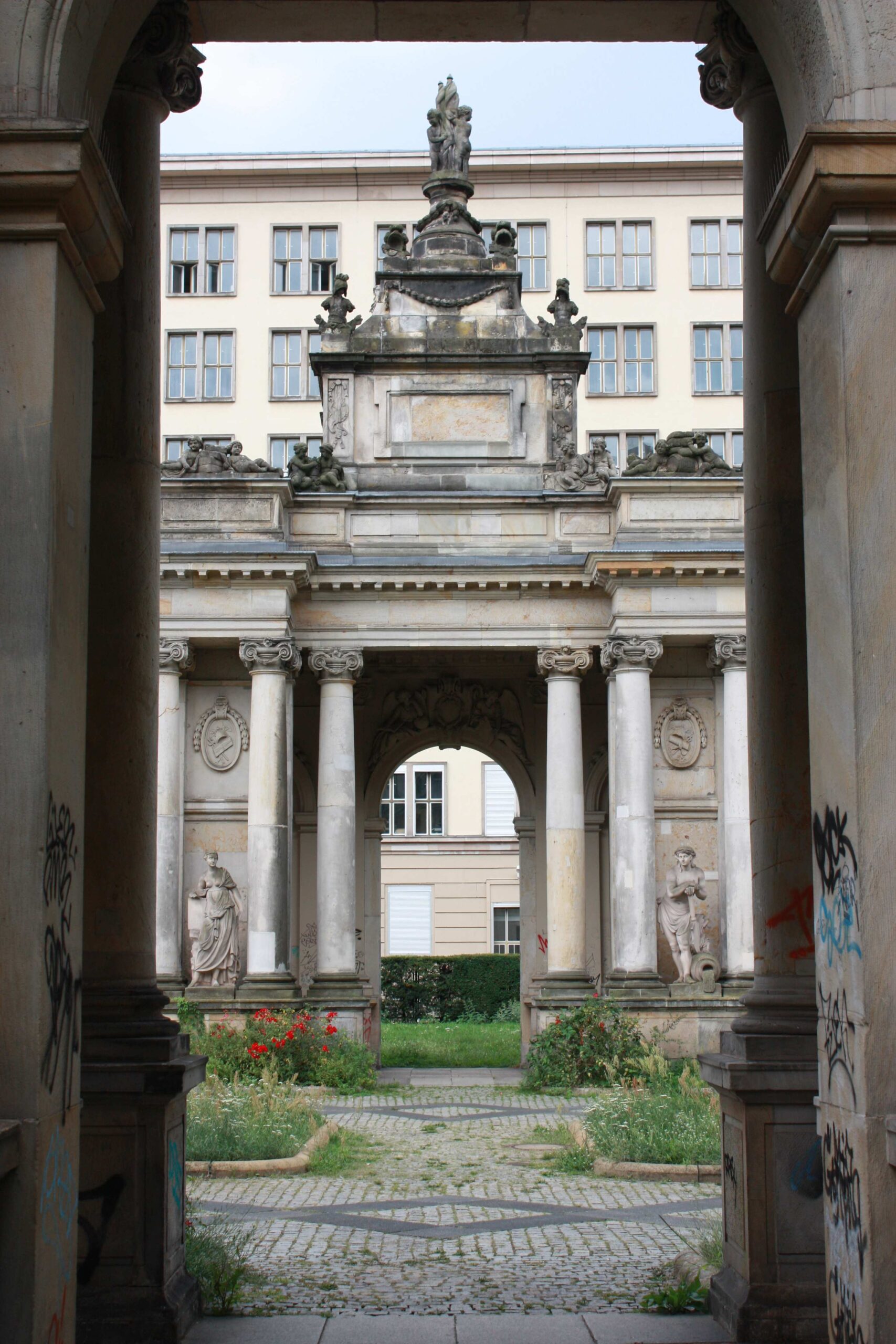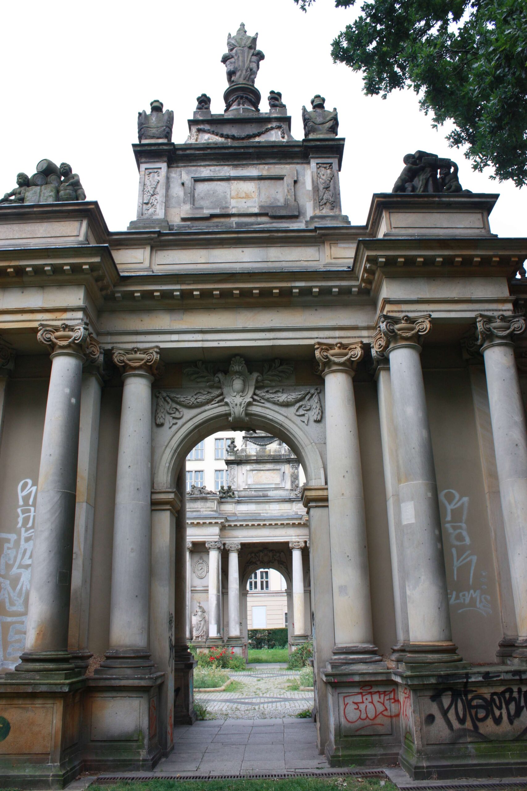 im 19. Jahrhundert Abbruch der hinterfangenden Kaufmannsläden (Boutiquen). 1910 die Kolonnaden transloziert und neu arrangiert. Figurenschmuck im 20. Jahrhundert durch Kopien ersetzt.
