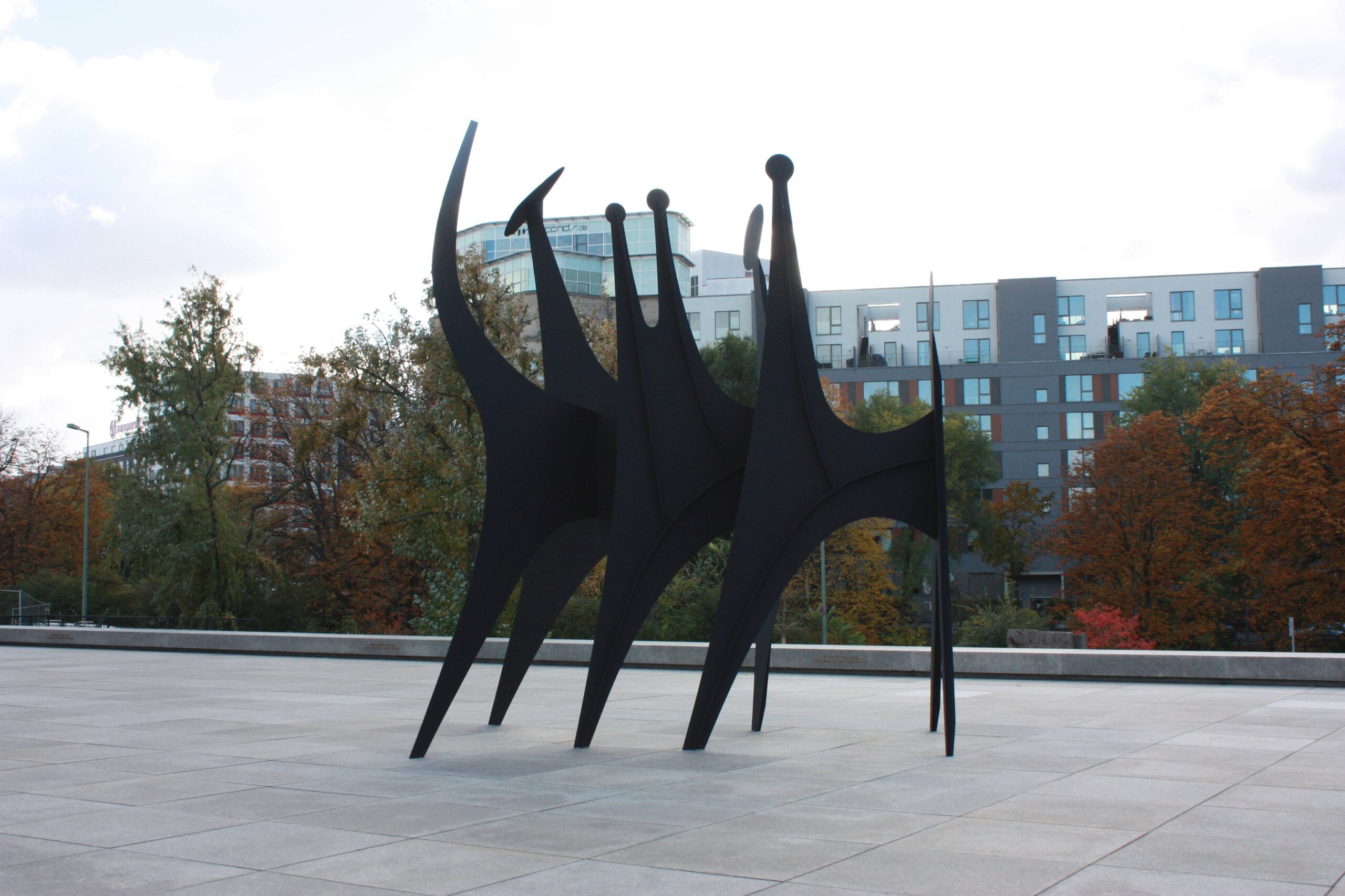Das Stahl-Stabile steht auf einer aus 25 grauen quadratischen Granitplatten bestehenden Fläche. Das Objekt wurde aus mattgrau lackierten Stahlplatten zusammengesetzt. Diese Platten wurden dabei miteinander verschweißt und vernietet. Sieben Standfüße stützen die Skulptur, sieben Spitzen ragen in die Höhe, von denen eine, die höchste Spitze als „Schwanz“ von einer waagerecht liegenden annähernd runden Platte bekrönt wird. Alle anderen Spitzen (die „Köpfe“) haben am oberen Ende senkrechtstehende kleinere runde Platten. Das Stabile hat eine offene Kontur mit geschwungenen Linien (Susanne Kähler).