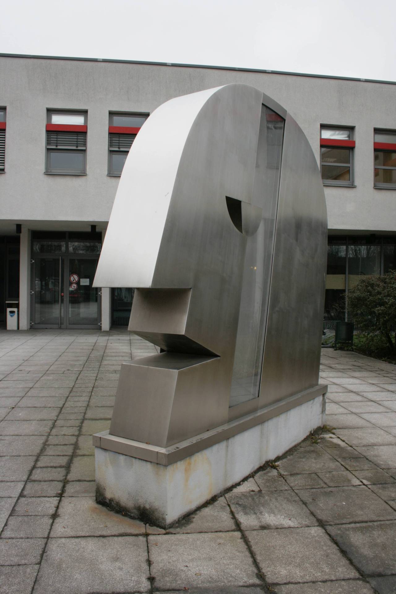 Die Standfläche für die 3,0 bis 4,0 Meter hohe Plastik aus Edelstahl und Plexiglas bildet ein schmaler hellgrau gefasster Betonsockel. Der Künstler formte mit Edelstahlplatten das Profil eines Kopfes als Scheibe, in den Bereich der Augen setzte er einen Durchbruch ein. Als Trennlinie zwischen die Bereiche Gesicht und Hinterkopf ist ein diagonaler Plexiglasstreifen in Form eines Fensters eingesetzt, der den Durchblick auf die andere Seite ermöglicht und in den Leuchtkörper eingebaut sind. Die Plastik ist auf der Plinthe bezeichnet (aus dem Stahlblech ausgesägt).