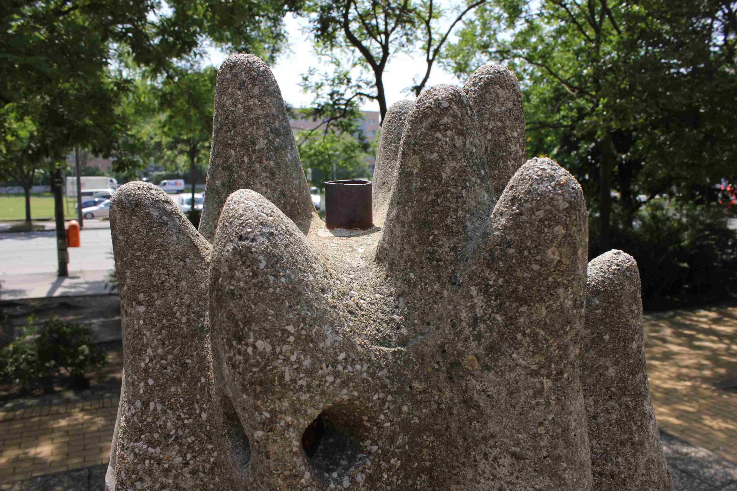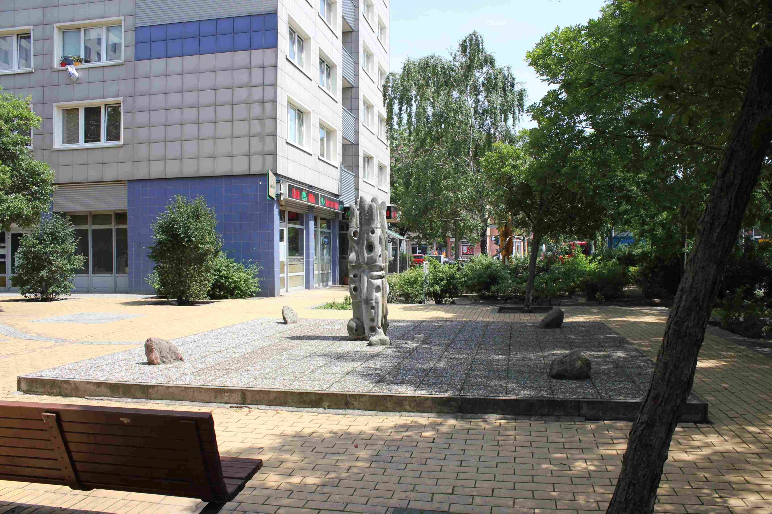 Der "Korallenbrunnen" wurde von der Künstlerin Toni Mau zwischen 1975 und 1979 geschaffen. Er ist aber mittlerweile außer Betrieb und trockengelegt worden. Nur die Korallenfiguren mit den Rohren sind von der ursprünglichen Gestaltung als Brunnen erhalten geblieben. Die ursprüngliche Form des Brunnens wird von Eberhard Ugowski 1993 so beschrieben: "In ein quadratisches Podest (6,50 x 6,50 m, Höhe 0,20 m) aus verschiedenfarbigen geschwungenen Kunststeinen ist ein Brunnenbecken (3 x 3 m) eingelassen, ausgelegt mit runden Plättchen in Grün- und Brauntönen. Im Becken stehen, als Korallenstöcke gestaltet, drei Betonplastiken (Höhe 0,60, 0,75 und 2,50 m), deren ovale und runde Durchbrüche zum Teil mit farbigem Glas versehen sind. Das Wasser tritt nach oben aus und läuft an den Betonkörpern ab. Laut eines Artikels von Monika Arnold aus dem Jahr 2013 wurde der Rieselbrunnen von dem Stadtbezirk Lichtenberg in Auftrag gegeben, um die Gegend zu verschönern. Außerdem heißt es 1993 im Verzeichnis der Kunstwerke im Bezirk Lichtenberg: „Verdeckt vom Hochhaus und abseits neben dem Café-Garten aufgestellt, kommt der originelle kleine Brunnen ungenügend zur Geltung. – Diese Brunnenanlage befindet sich in einem guten Erhaltungszustand" (Brösicke-Istok, Sylvia, 1993, S. 27). Das Keramik im Becken verwendet wurde, lässt sich heute nicht mehr nachweisen, da das Becken verfüllt und mit Platten belegt ist. Der ehemals zugehörigen Zaun, der auf gleiche Weise wie der Brunnen selbst gestaltet war, ist ebenfalls nicht mehr vorhanden. Die eingelassenen bunten Glaskörper sind teilweise zerstört und der Zaun entfernt (vgl.: Arnold, Monika. (12. Januar 2013). bezirke.morgenpost.de) (Dietje Ziemer).