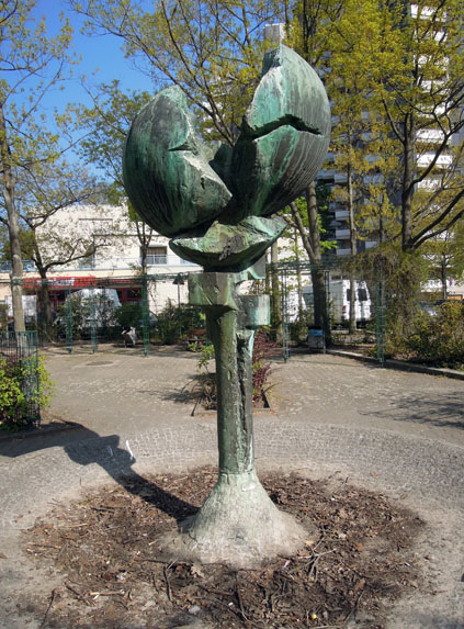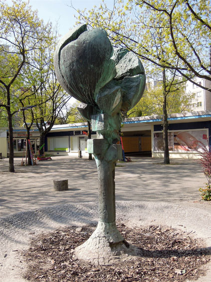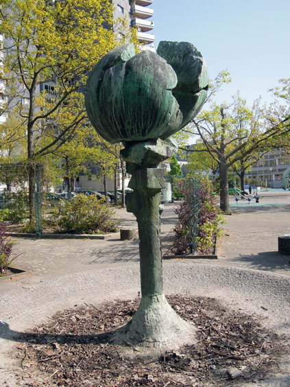 Paul Brandenburg beschrieb seine Gedanken zur Plastik so: „Eine Kugel – eine geometrische Form wie die umliegende kubische Architektur – wächst aus einem baumartigen Schaft auf. Natur und Menschen- werk gehen in dieser Form eine innige Verbindung ein. Das Element des Wassers aber drängt als lebendige dynamische Kraft aus dieser Kugel hervor, scheint sie zu sprengen. Ein Lebensvorgang ist hier an- gedeutet, ein Aufbrechen der Form unter dem Druck des lebenspendenden Wassers, wie im Frühling die geschlossene Knospe aufbricht zur Blüte.“ (Paul Brandenburg: Gedanken zum Brunnen „Gespaltene Kugel“ […] gefunden in: Museum Reinickendorf, Archiv, Bibliothek, Künstler) (Jürgen Tomisch, Barbara Anna Lutz).