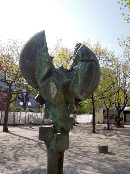 Paul Brandenburg beschrieb seine Gedanken zur Plastik so: „Eine Kugel – eine geometrische Form wie die umliegende kubische Architektur – wächst aus einem baumartigen Schaft auf. Natur und Menschen- werk gehen in dieser Form eine innige Verbindung ein. Das Element des Wassers aber drängt als lebendige dynamische Kraft aus dieser Kugel hervor, scheint sie zu sprengen. Ein Lebensvorgang ist hier an- gedeutet, ein Aufbrechen der Form unter dem Druck des lebenspendenden Wassers, wie im Frühling die geschlossene Knospe aufbricht zur Blüte.“ (Paul Brandenburg: Gedanken zum Brunnen „Gespaltene Kugel“ […] gefunden in: Museum Reinickendorf, Archiv, Bibliothek, Künstler) (Jürgen Tomisch, Barbara Anna Lutz).