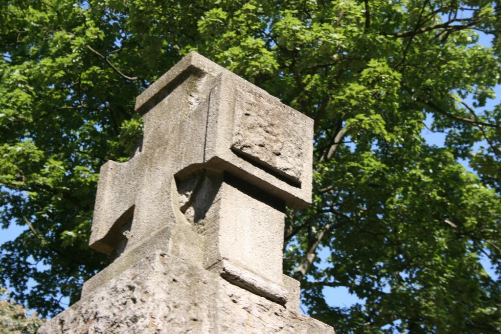 Mit Eisernem Kreuz bekrönter stumpfer Obelisk über mehrstuftigem Unterbau, in den ein Podest mit Stahlhelm, Lorbeerkranz und Schwert-Arrangement eingesetzt ist. Vertieft auf der Front eine Inschrift, auf den Seiten erhaben senkrechte Darstellung von Schwertern (Jörg Kuhn).