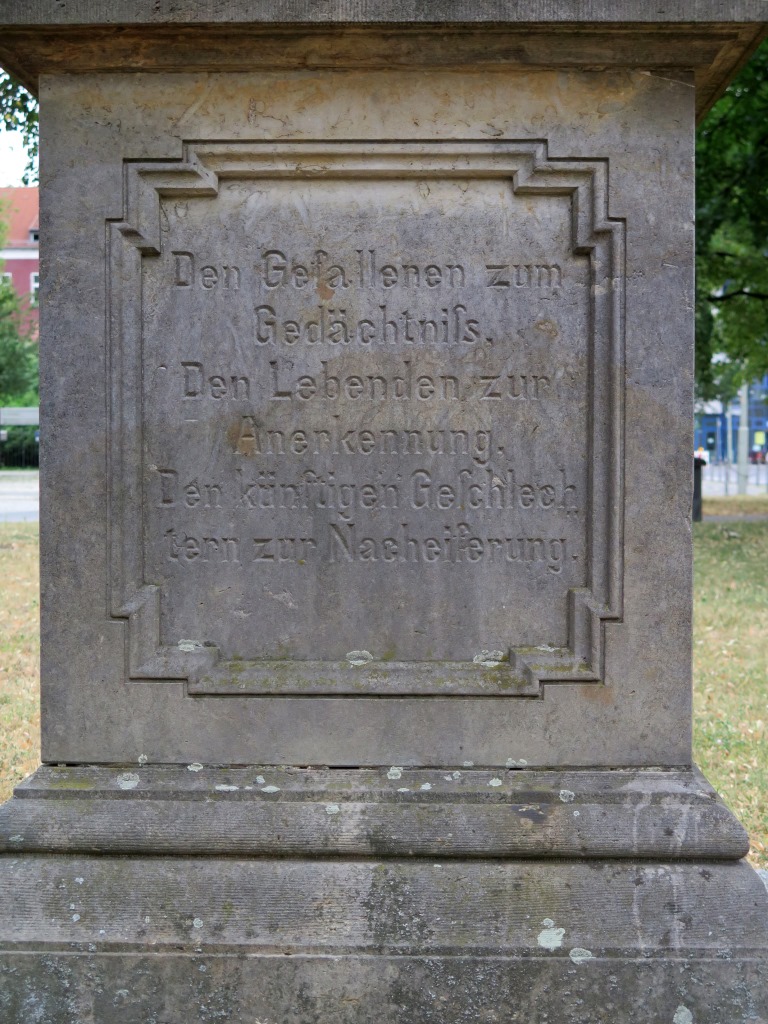 »Den Gefallenen zum / Gedächtniss. / Den Lebenden zur / Anerkennung. / Den künftigen Geschlech / tern zur Nacheiferung.«