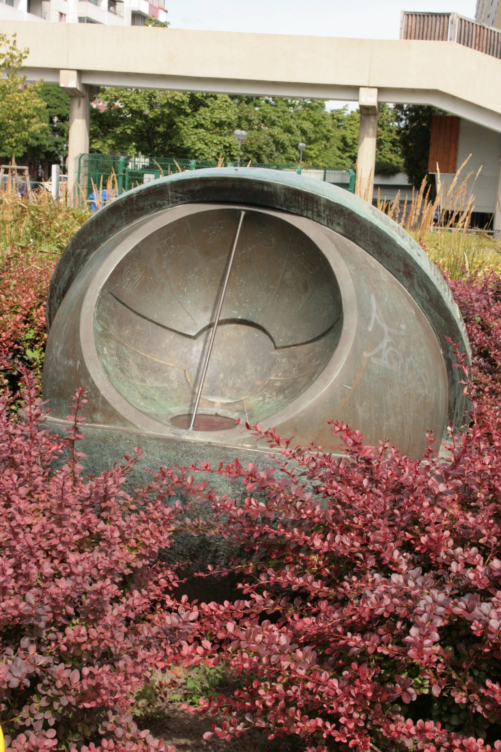 Ursprünglich stand die Sonnenuhr auf einer freien, gepflasterten Fläche. Das Umfeld ist 2005 umgestaltet worden. Eine drehbare Edelstahlkugel und eine blaue Kugel mit Keramikmosaik (Planeten, die um die Sonne kreisen) sind der Gestaltung hinzugefügt worden. Die blaue Mosaikkugel ist in Kooperation mit der Grundschule in der Köllnischen Heide entstanden. Die Inschrift auf einer Plakette aus Edelstahl mit vertieften Lettern lautet: Die Weltkugel / Projekt der / Grundschule in der Köllnischen Heide / mit Toygun Baren + Mukadder Dur / + Sermet Burgac + Sevtab Kök + / Mine Henki + Hischam Ibrahim + / Stefanie Bück + Marcel Gumlich / + Halime Gücel + Birgit Kowalke / + Mesuk Ahan und Elke Gödicke. Die gesamte Neugestaltung des Platzes 2005 lag in den Händen der Landschaftsplaner „Stadt und Land“. Dabei wurde auch die Aufstellung der Sonnenuhr verändert (Susanne Kähler, Jörg Kuhn).