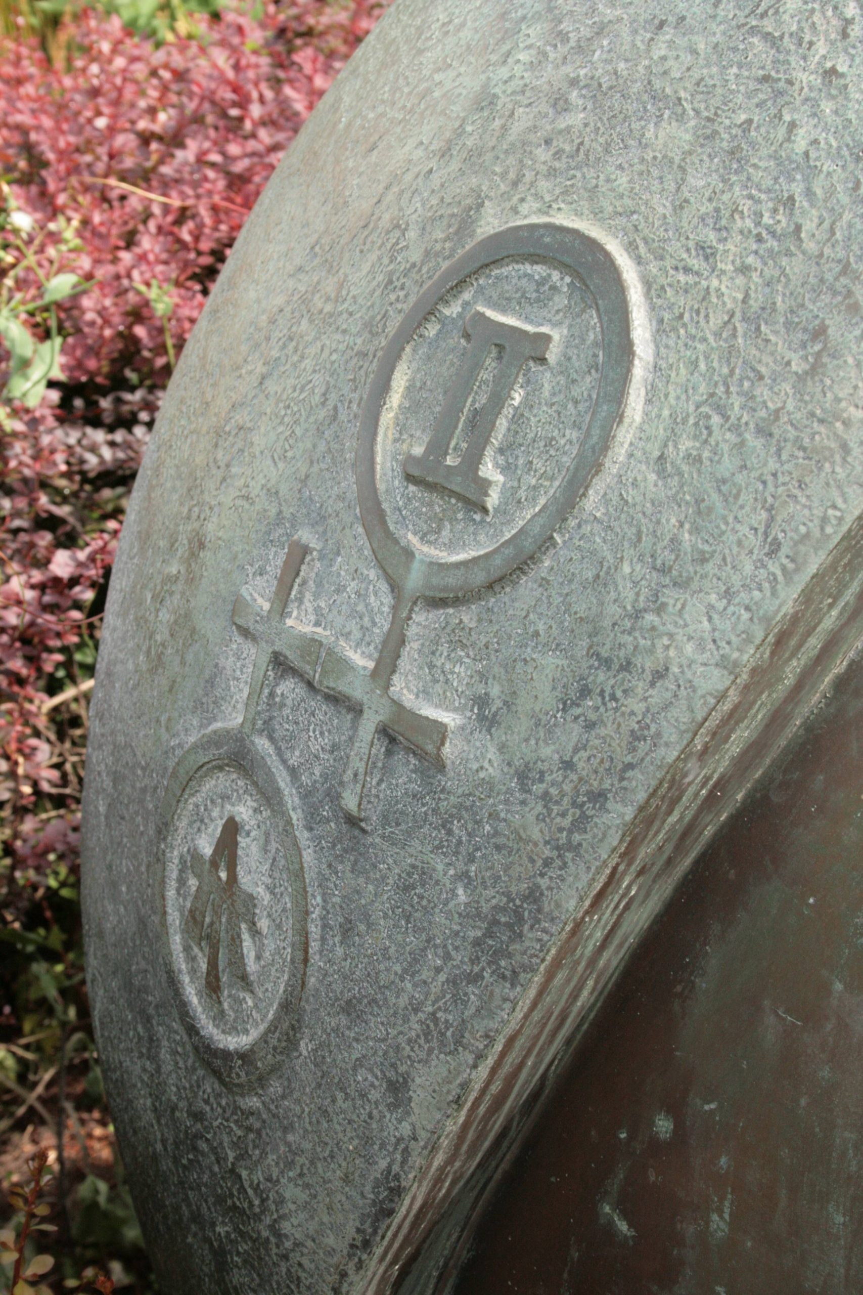 Wie eine reife geöffnete Kastanienfrucht oder ein geöffnetes Auge geformt, ruht die Kugelsonnenuhr auf einem nicht eigens definierten runden Fuß. In ihre südliche Hälfte ist die muldenförmige halbkugelige Sonnenuhr eingestellt. Der Zeigerstab läuft von unten nach oben in grader Linie. In das Halbrund sind die Symbole des Zodiak eingetieft sowie die Uhrenziffern von 6 bis 18 Uhr in waagerechter Anordnung. Auf der linken Außenseite sind erhaben dargestellt: zwei Symbole (männlich / weiblich) sowie römische Ziffern und Zeichen. Auf der rechten Außenseite der Außenschale steht rund verlaufend: TEMPUS VINCIT OMNIA (Susanne Kähler).