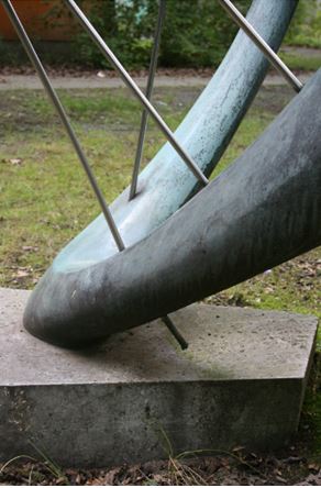 Auf asymmetrischer Travertinplatte steht die abstrakte Plastik „Leier“ mit der stilisierten Gestalt einer Leier. Das Werk ist in Bronze gegossen, die einmontierten vier Saiten jedoch aus Edelstahl gearbeitet. In Ermangelung einer historischen Ansicht ließ sich bisher nicht klären, wo, wie in der neueren Literatur erwähnt zu finden, der Bogen fehlen könnte, zumal eine Leier ja kein Streich- sondern ein Schlag- oder Zupfinstrument ist (Jörg Kuhn, Susanne Kähler).