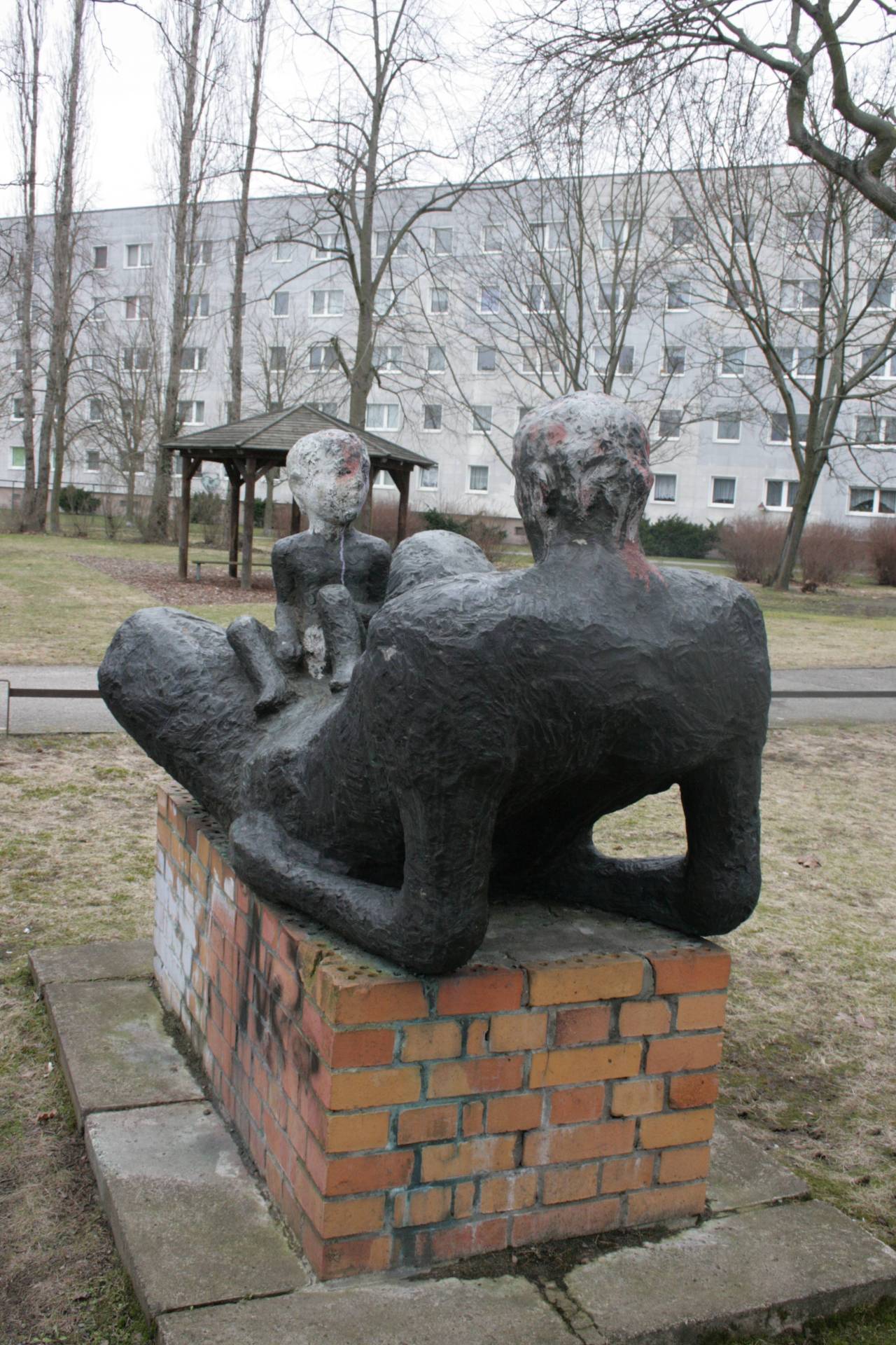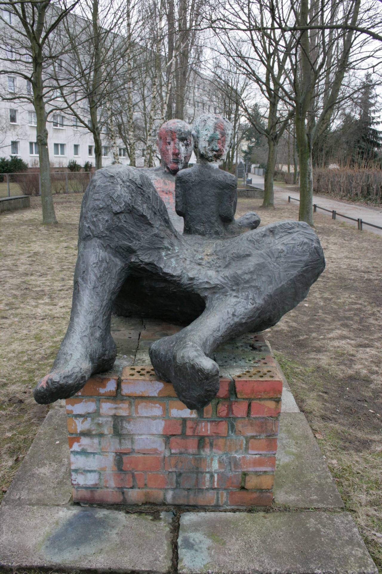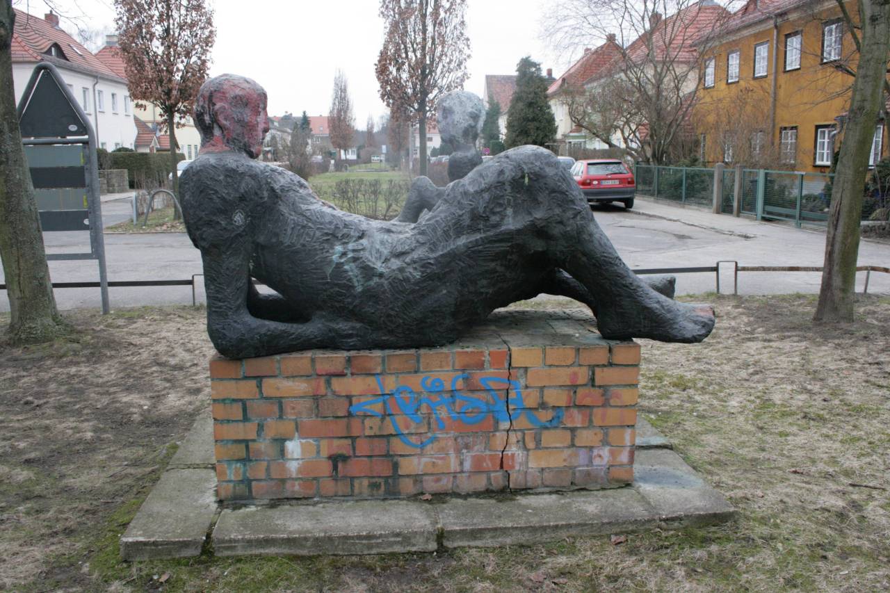 Auf einem 0,60 m hohen, 1,60 m langen und 0,80 m tiefen Sockel mit Klinkerverkleidung ruht die mächtige Bronzefigur einer weiblichen Liegenden (laut Stefanie Endlich, 1990, und dem Berliner Bezirkslexikon Treptow-Köpenick, 2009, handelt es sich um eine männliche Figur) mit aufgestützten Armen. In ihrem Schoß sitzt ein nacktes männliches Kind. Die grob formulierte Oberfläche und die abstrahierende Gestaltung tragen dazu bei, dass die unmittelbar auf dem groben Klinkersockel plinthenlos aufsitzende Plastik wenig gefällig wirkt (Susanne Kähler).