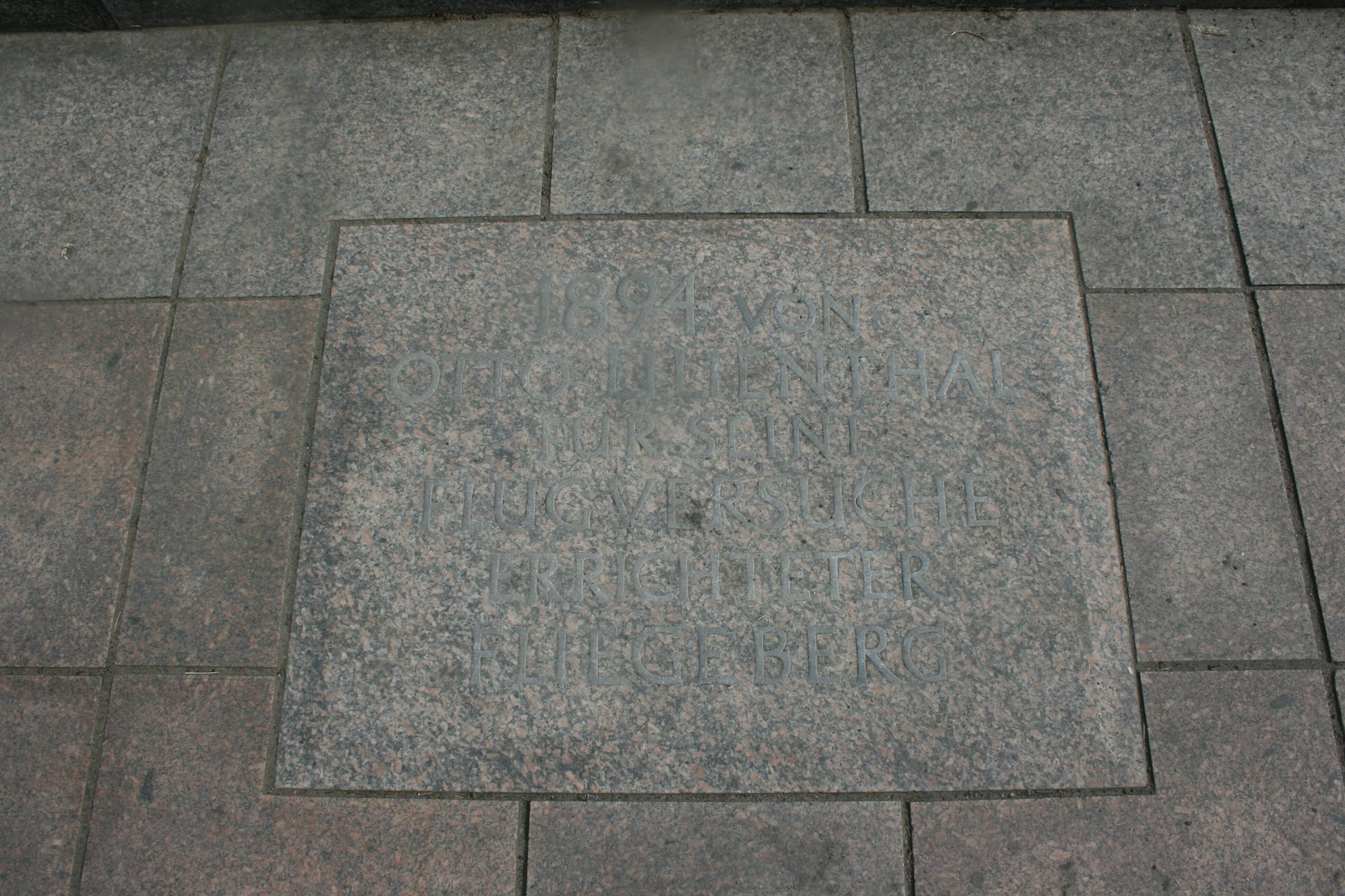»1894 VON / OTTO LILIENTHAL / FÜR SEINE / FLUGVERSUCHE / ERRICHTETER / FLIEGERBERG«